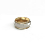 The mixed-color design features crystals on both sides of the large form and can be used as an accent to coordinate with your existing rings.