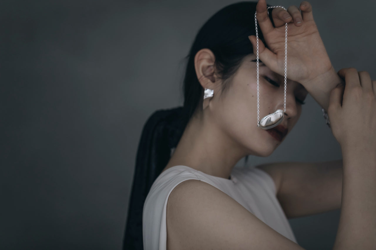 These cool-looking plate earrings feature irregular carvings, retaining a feminine touch expressed through curves.