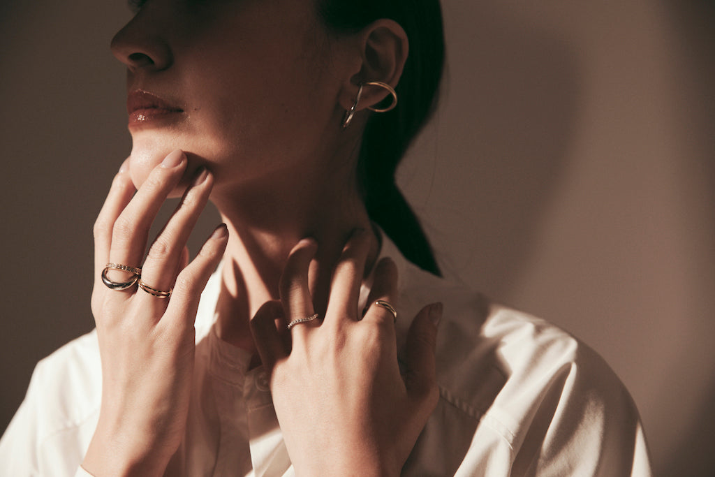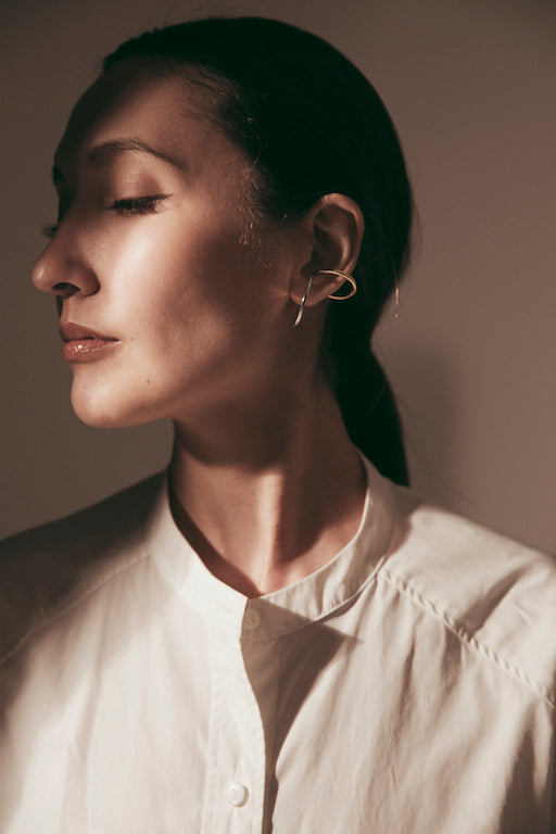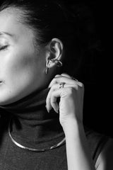 This ear cuff with two large rings makes a big impact. When you insert it from the side, it will decorate your ear along your face line.