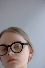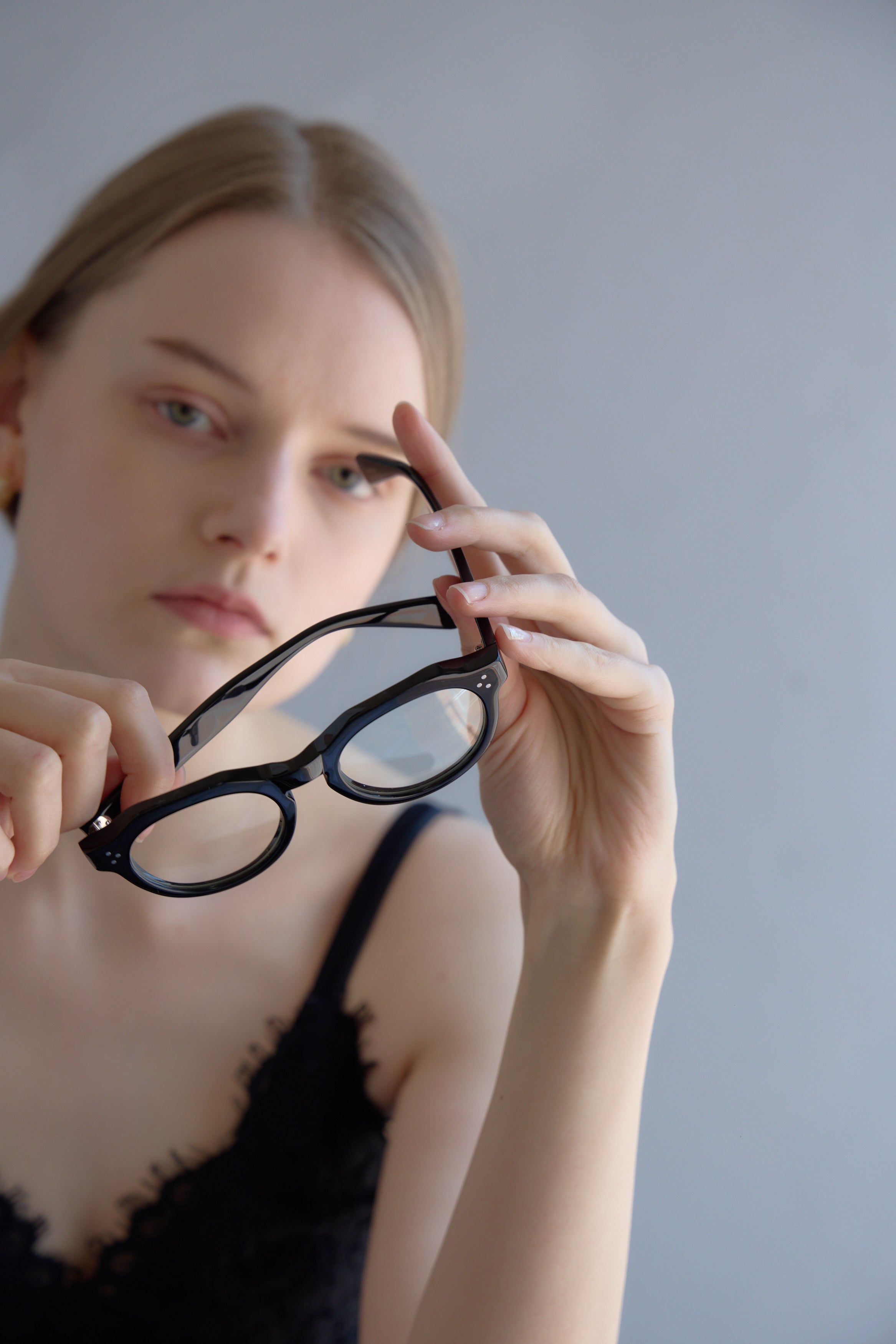 Made from high-quality acetate material with a glossy, lustrous finish, the classic rounded shape gives a soft and elegant impression to the face.