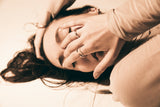 This ring features two thin gold lines. Despite its delicate lines, the rounded design accentuates the hand.