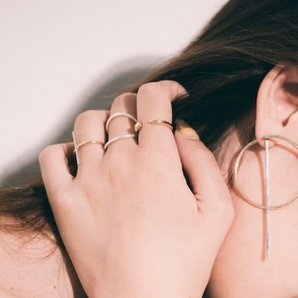 非対称にデザインされた存在感のあるゴールドカラーのリングです。