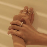 オープンタイプなので、太めなデザインの中にも抜け感があり、スタイリッシュなコーディネートのアクセントになります。
