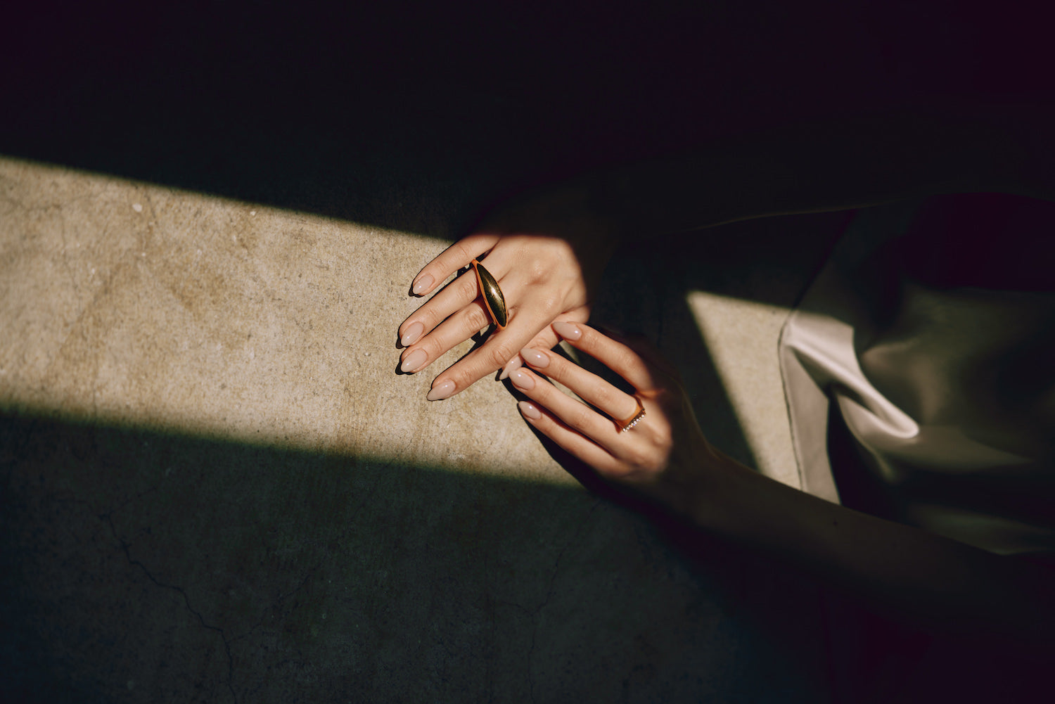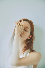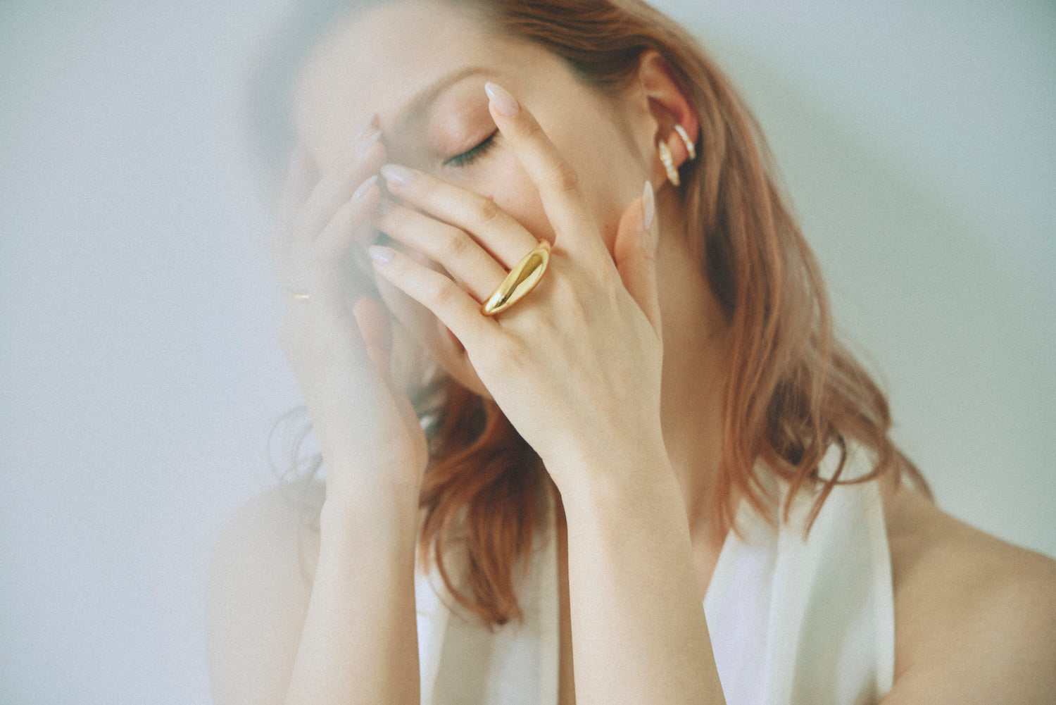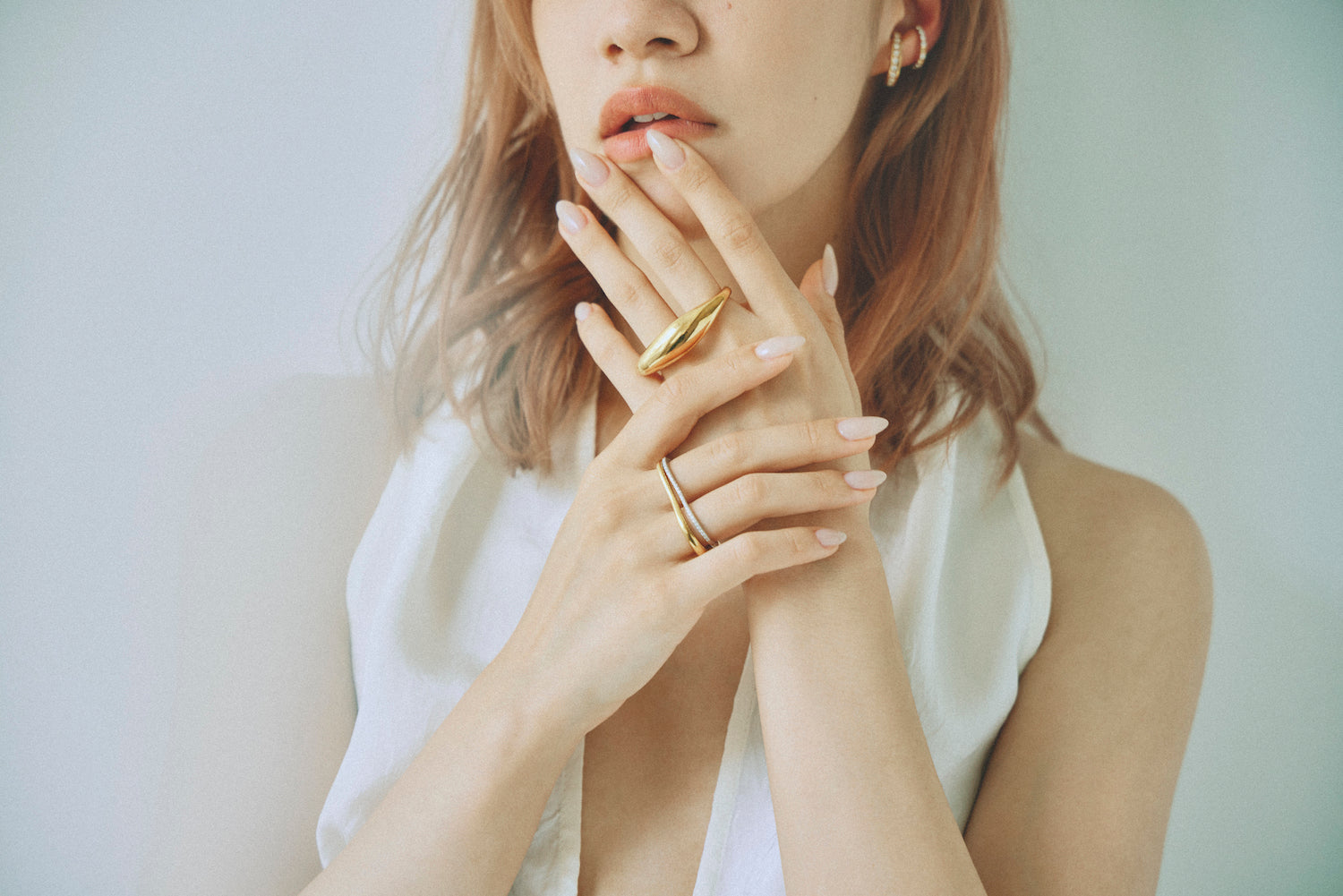 指はスッキリと見せつつも、しっかりボリュームを持たせた 存在感のあるモチーフリング。