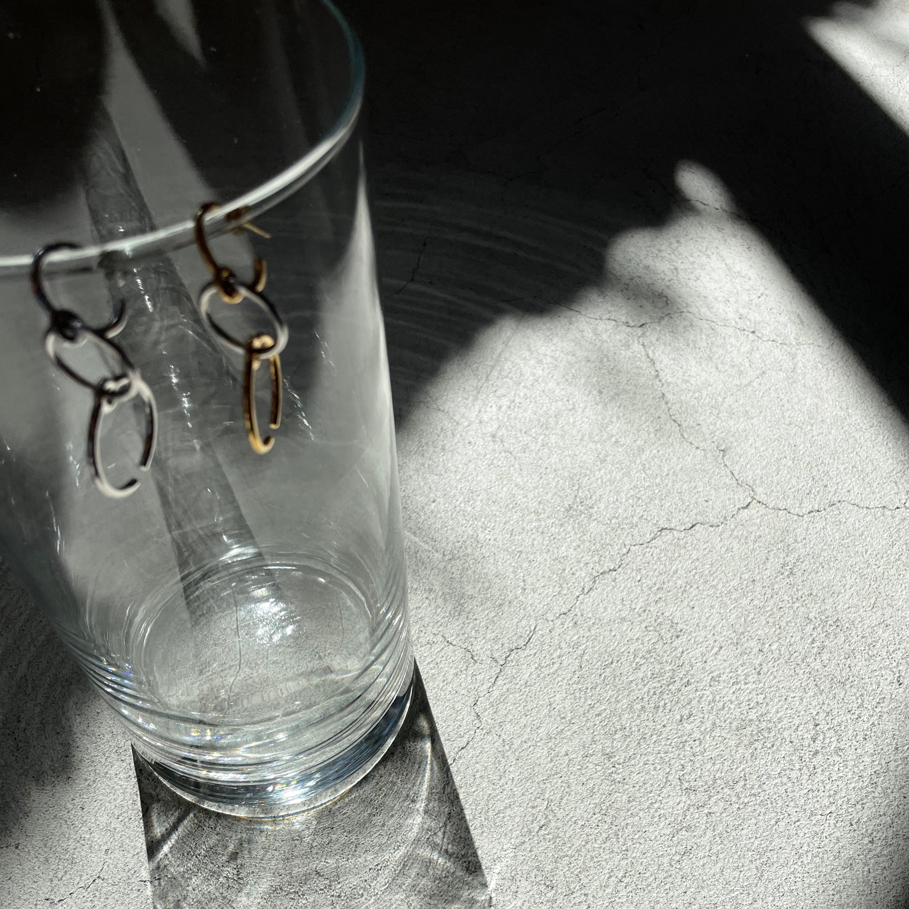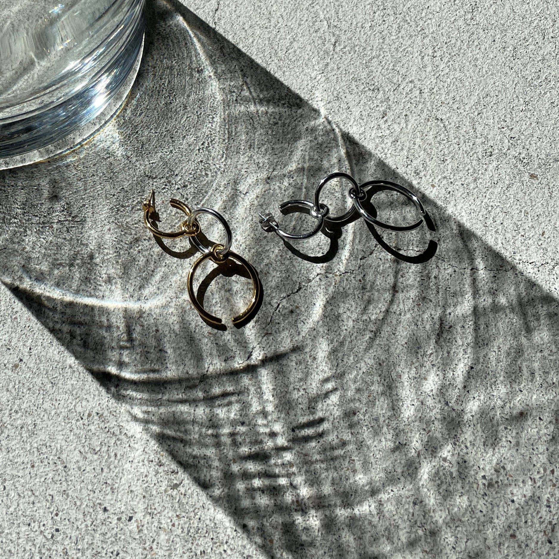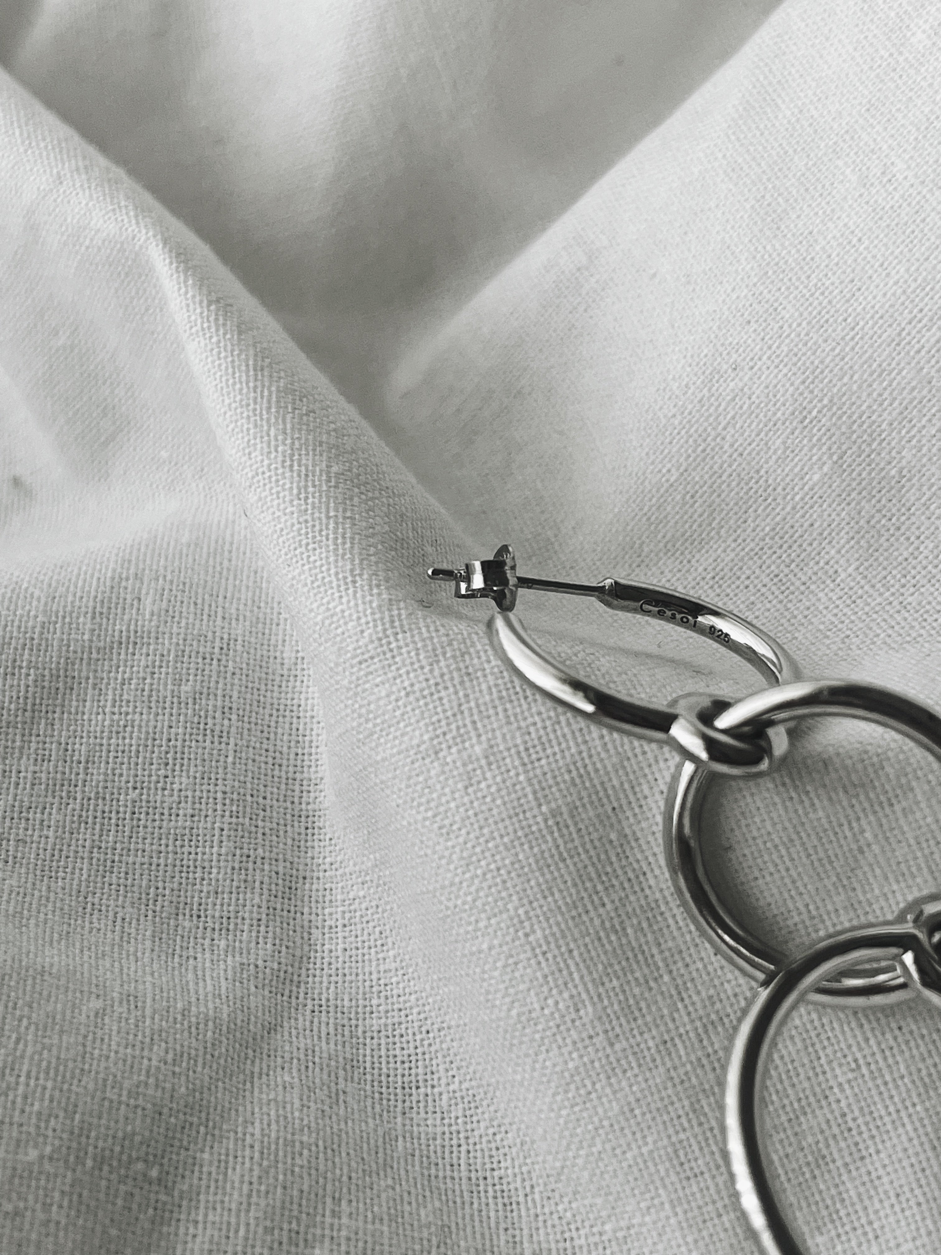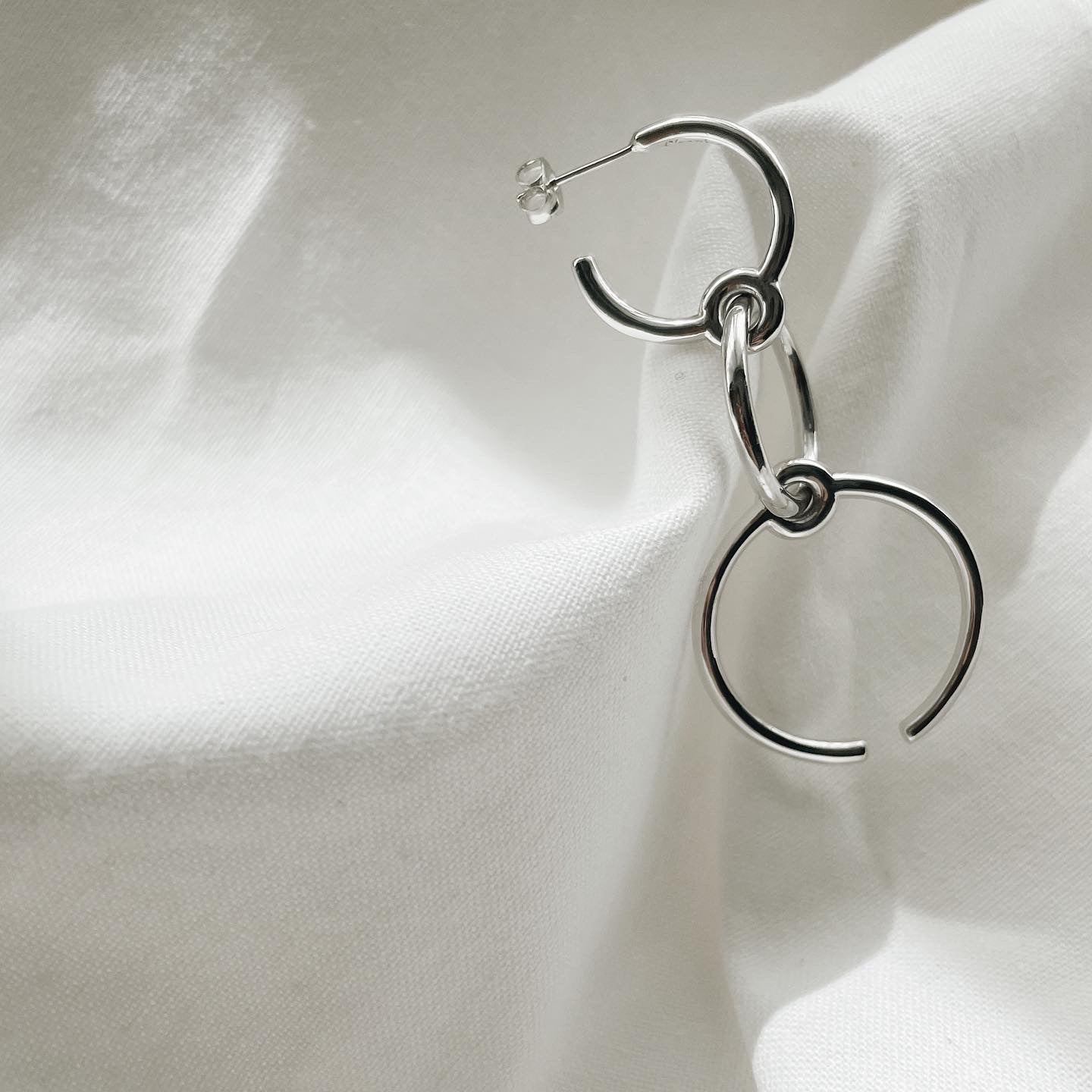 サイズのちがう3つのリングが連なったピアスです。