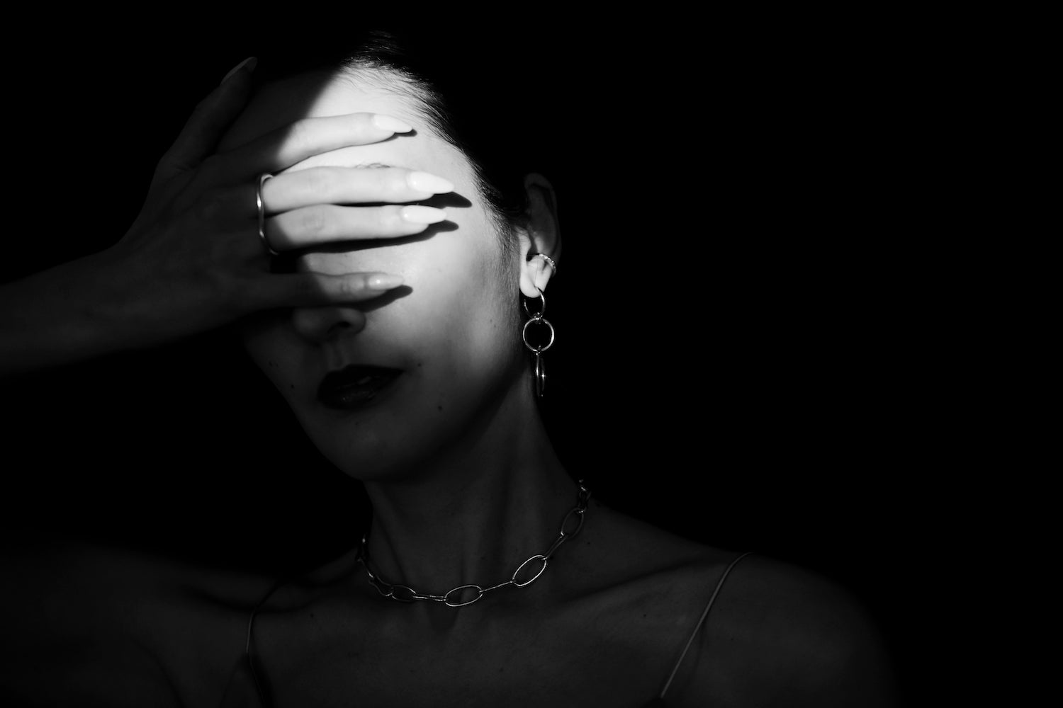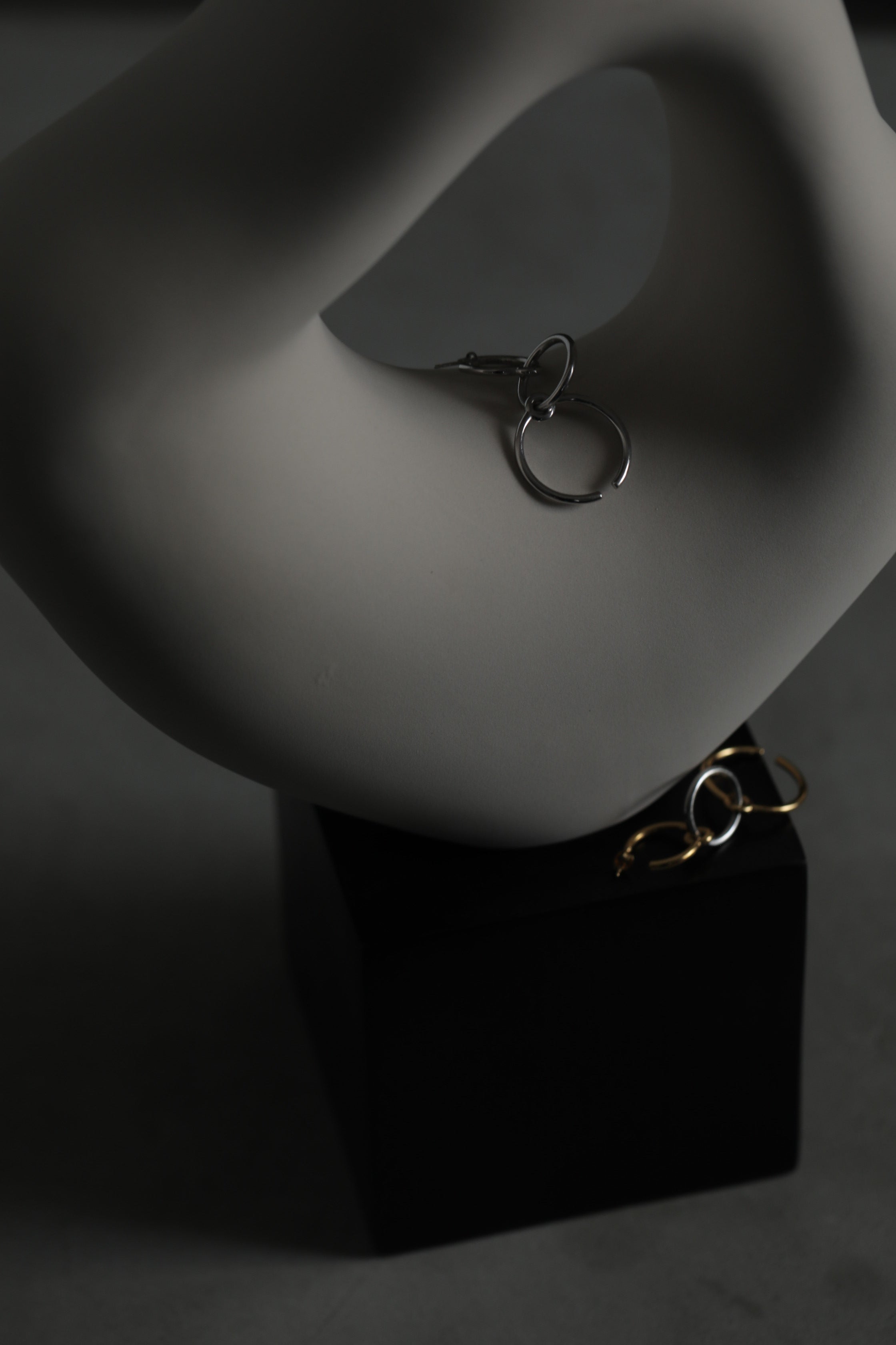 3つ目のリングをイヤーカフとして耳に引っ掛けていただくことで、