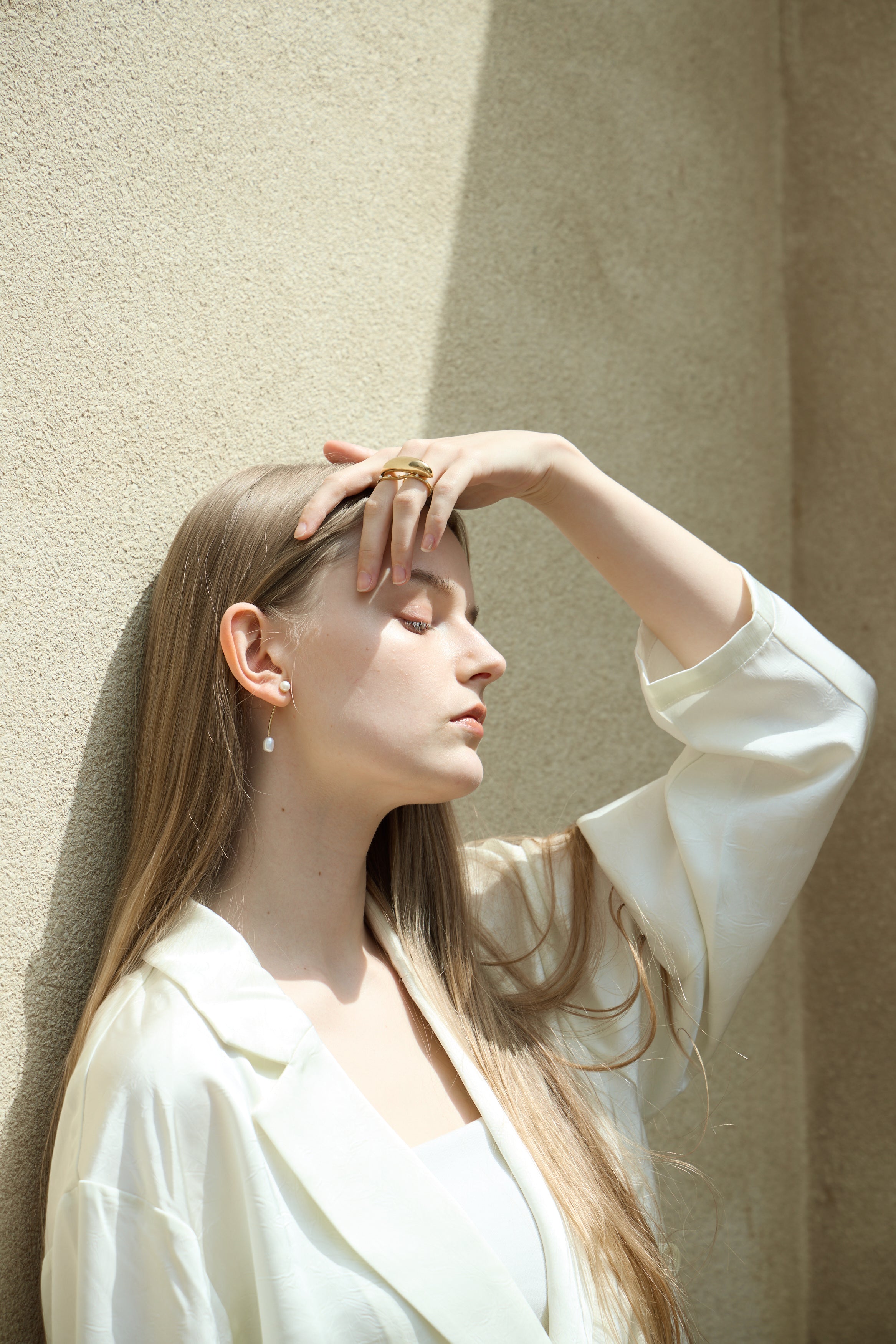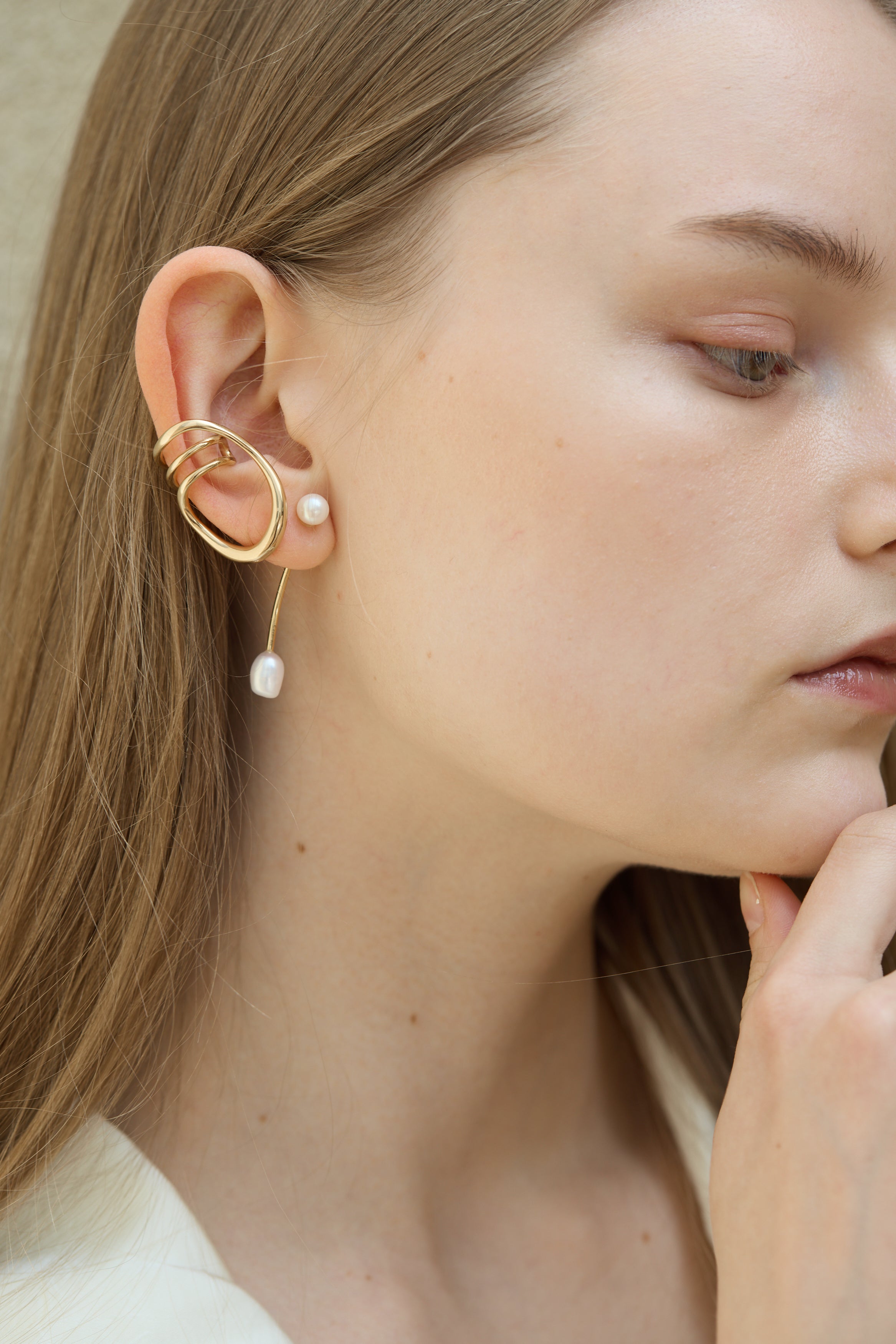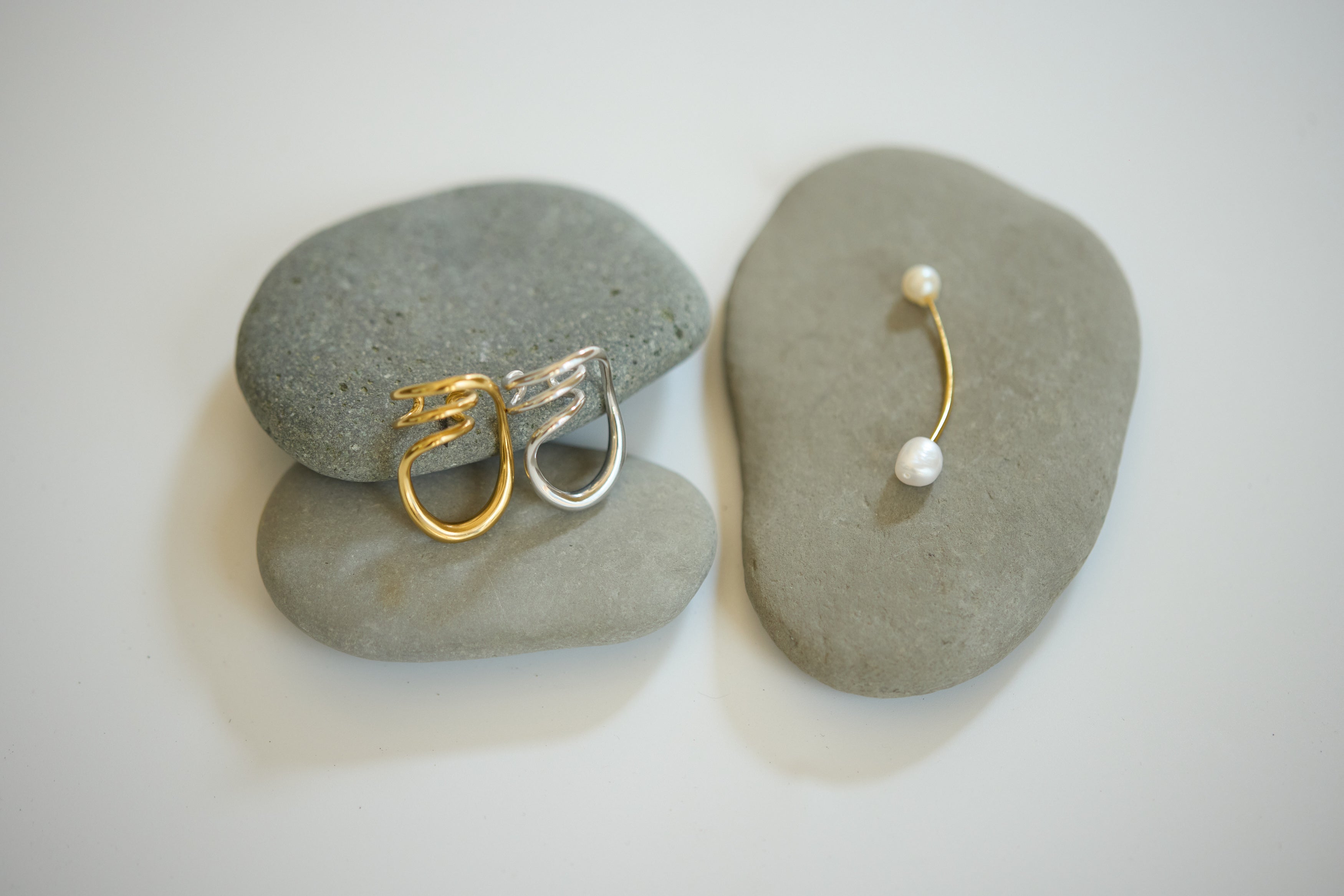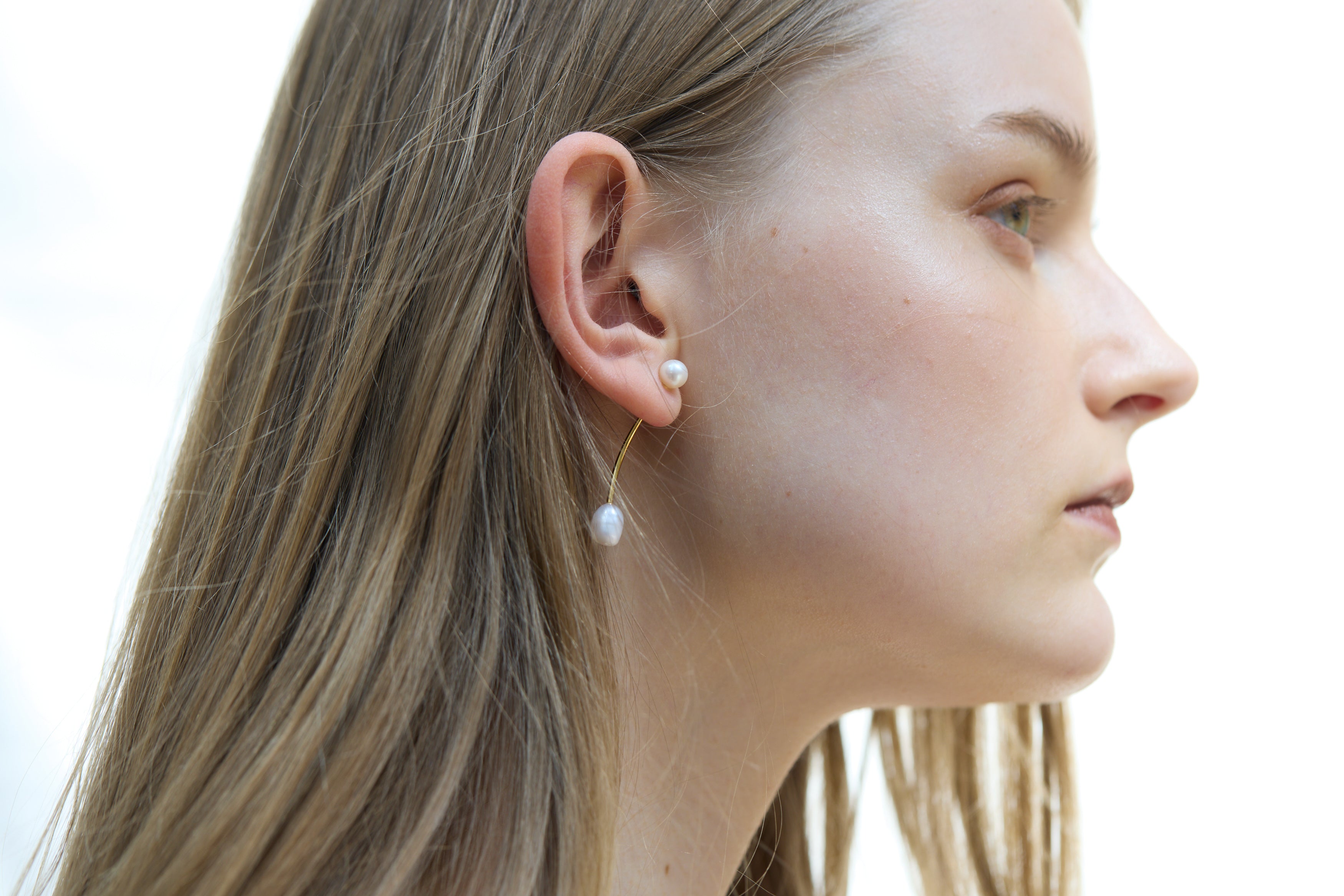 そぎ落とされたフォルムと、繊細なカーブラインが耳元に静かな存在感を添え、シンプルながらも洗練されたムードを演出します。