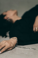 2種類のオリジナルパーツでデザインされたチェーンのネックレス。