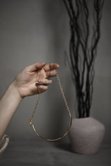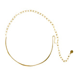 いびつな線でデザインされたチョーカーとチェーンがドッキングしたチョーカーネックレス。チェーンを引っ掛ける位置を変えることで、首に沿うように着用したり、長めにしてネックレス風にもお使いいただけます。チョーカー部分に微妙な太さの強弱があることで、女性らしい繊細な雰囲気を残した上品な印象。