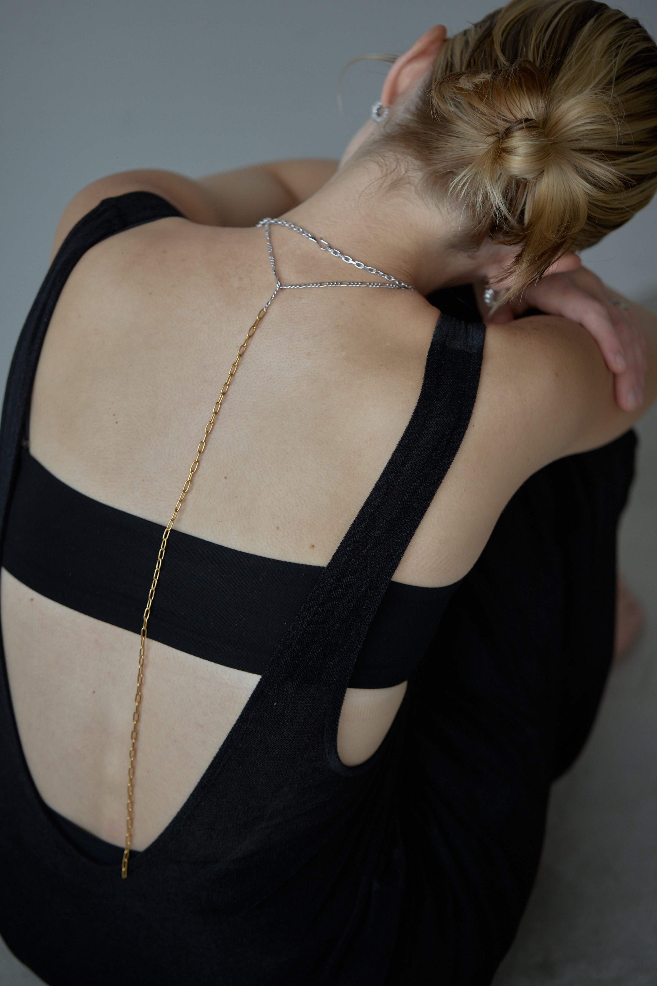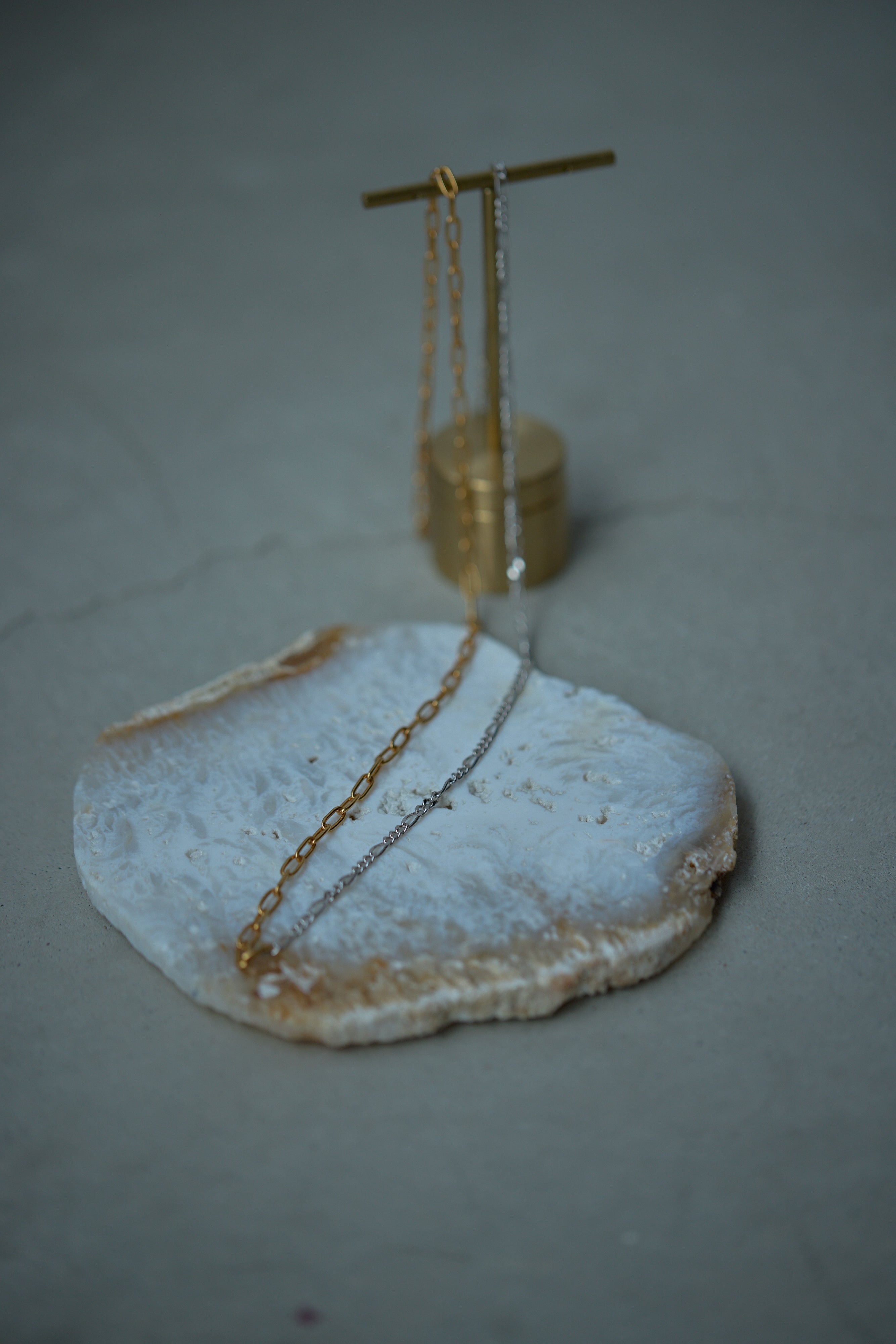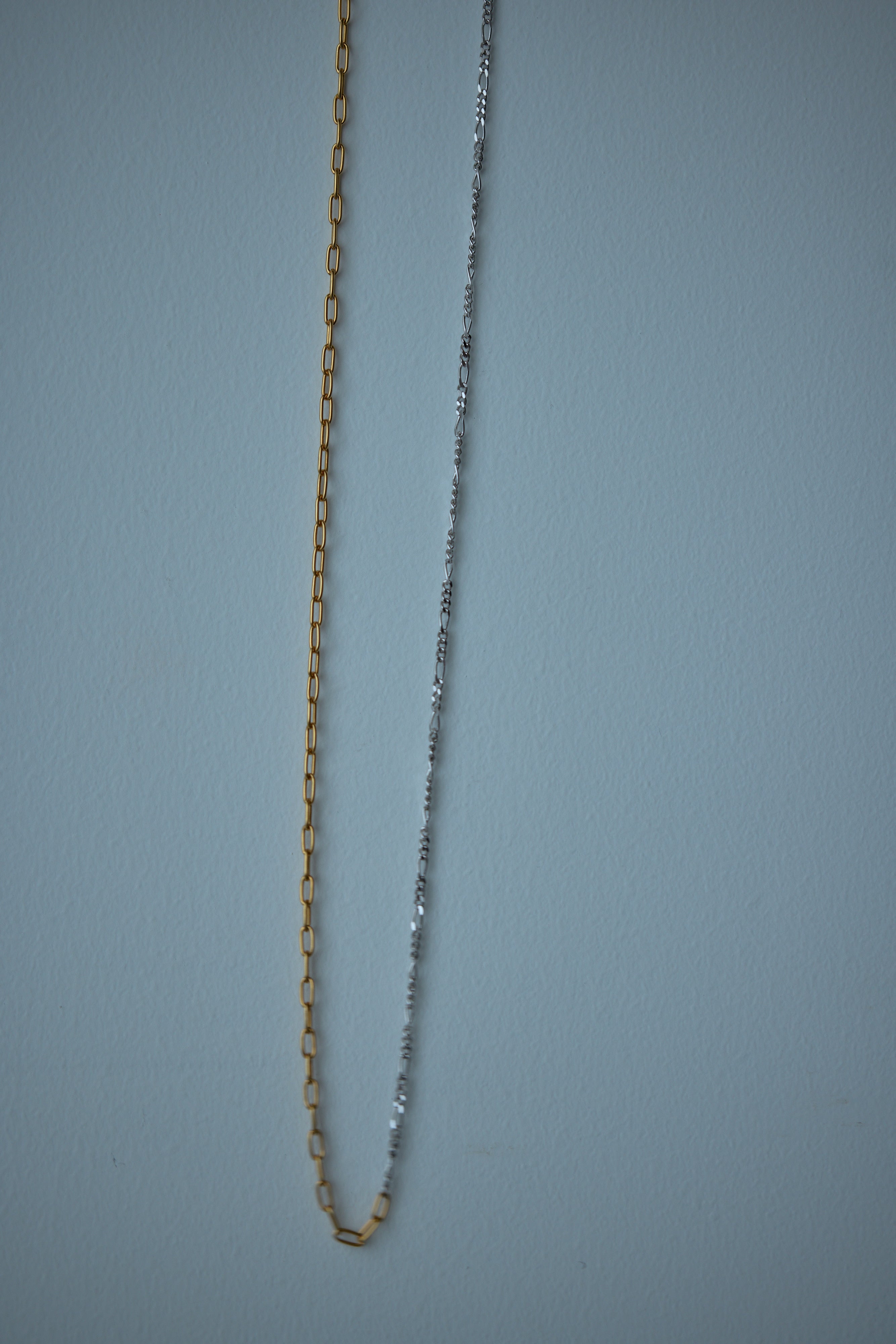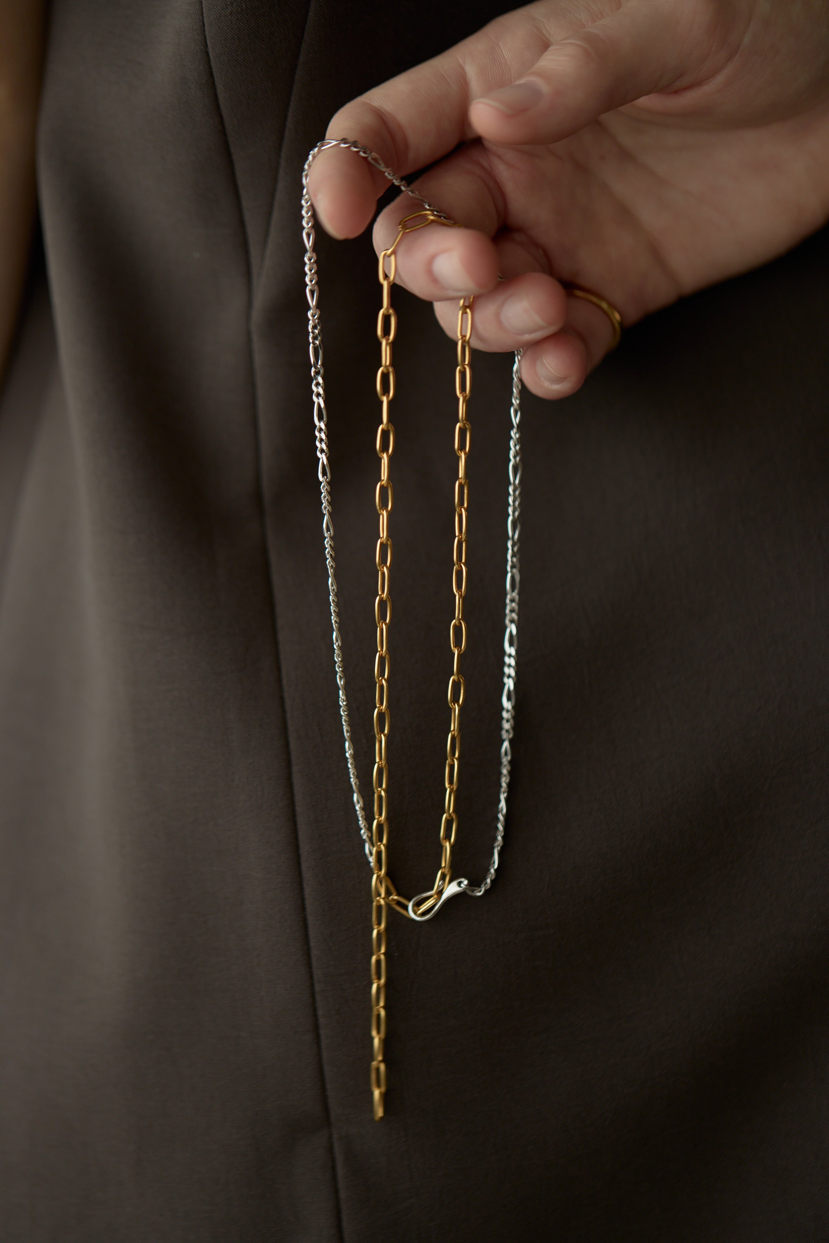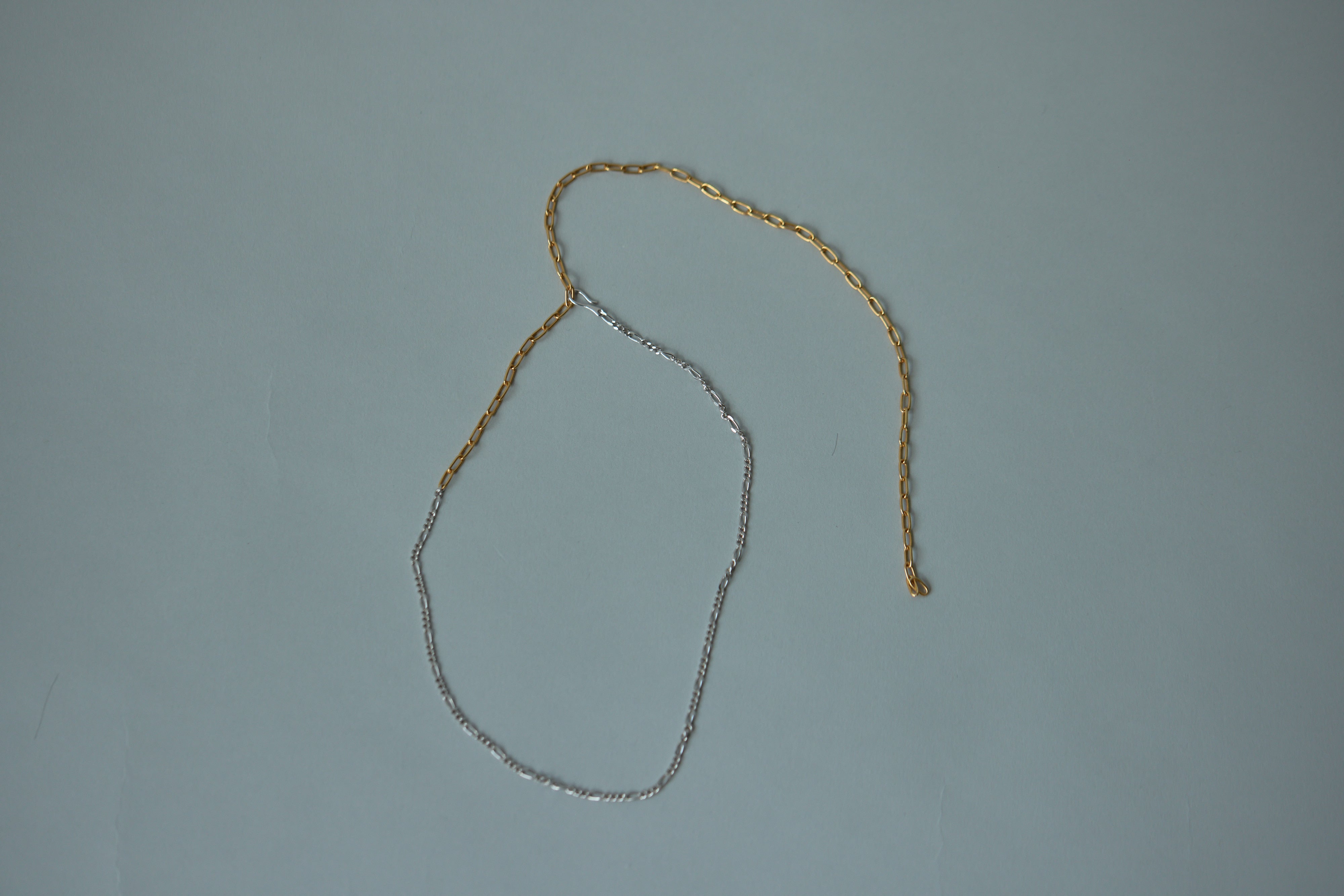 異なる表情のチェーンをコンビカラーで組み合わせたロングネックレ