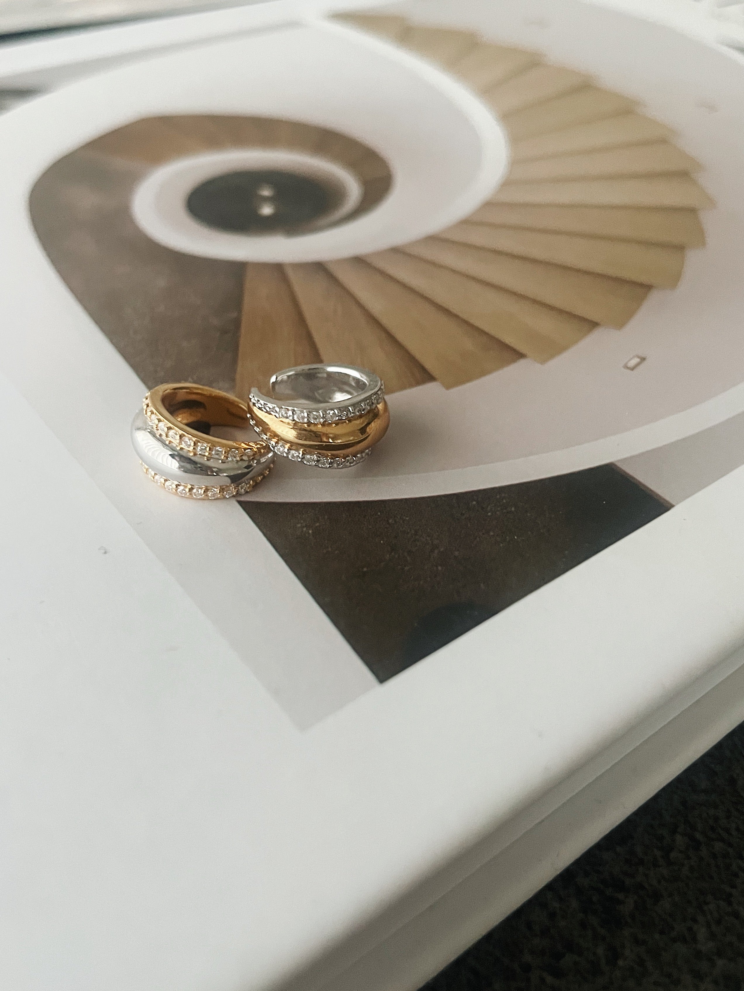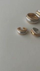 発売から人気のCrystal Combi RingのEarcuffが登場。両側にクリスタルをあしらったミックスカラーのデザインは、小ぶりで控えめなサイズ感のためさまざまなレイヤードスタイルを楽しめます。