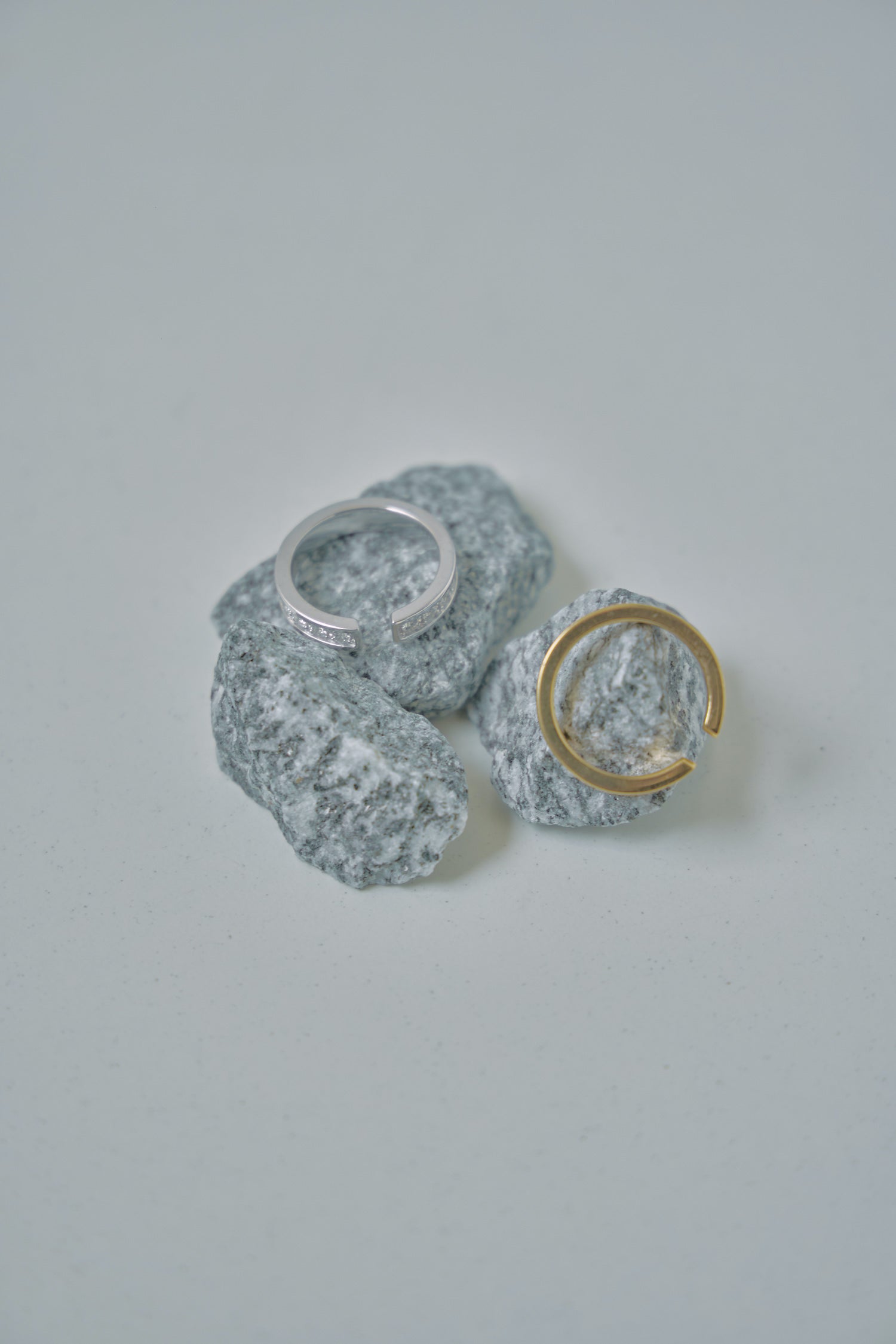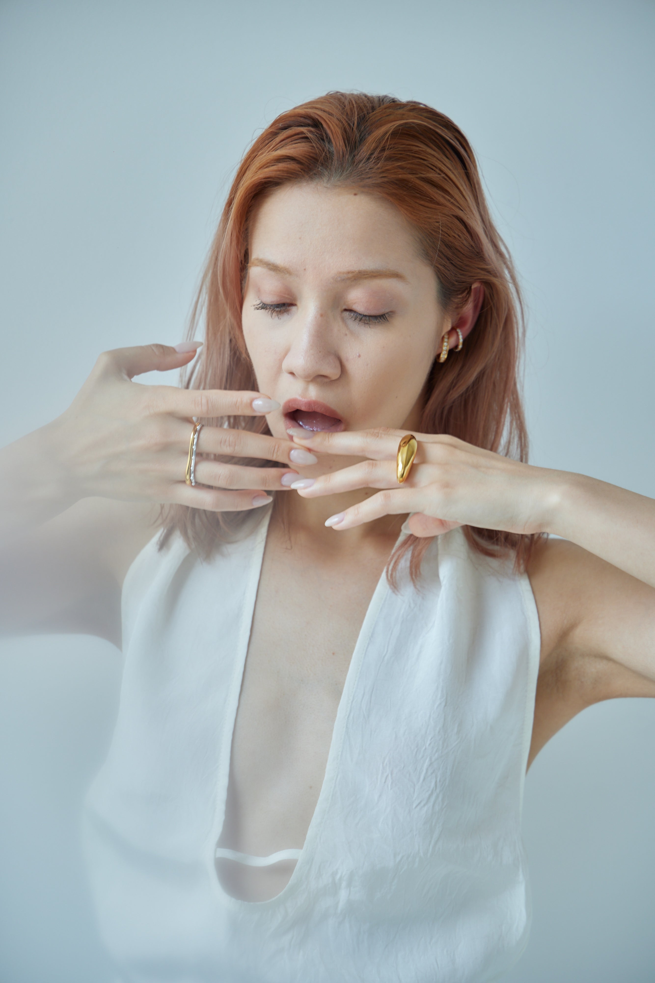 オープンリングとして着用すれば、他のリング とレイヤードしても抜け感が出て手元のコーディートも幅広 く使えるアイテムです。