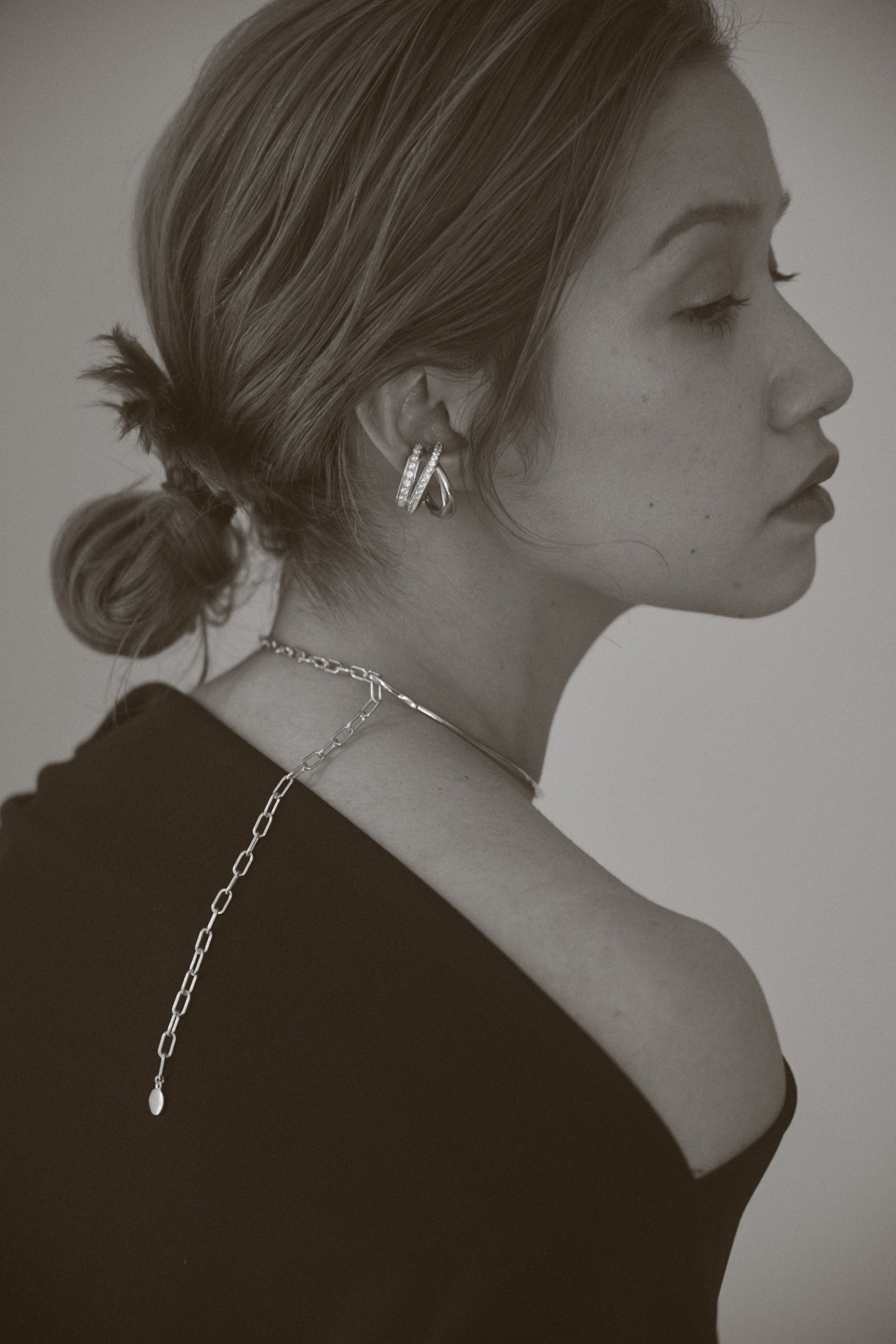 Earcuffとしては大ぶりなサイズ感で1つでも満足感はあります が、お待ちのピアスやイヤーカフとの重ね付けしても良いア クセントに。