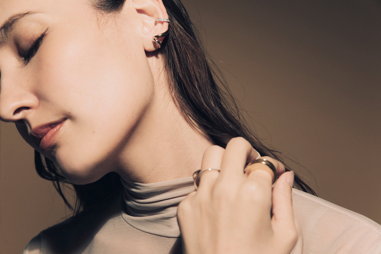 耳に沿ってフィットするデザインは、ひとつ着用していただくだけで、まるで計算されたコーディネートのような仕上がりに。