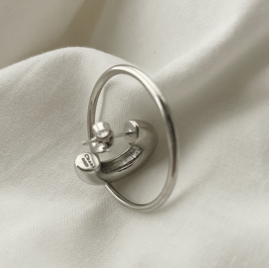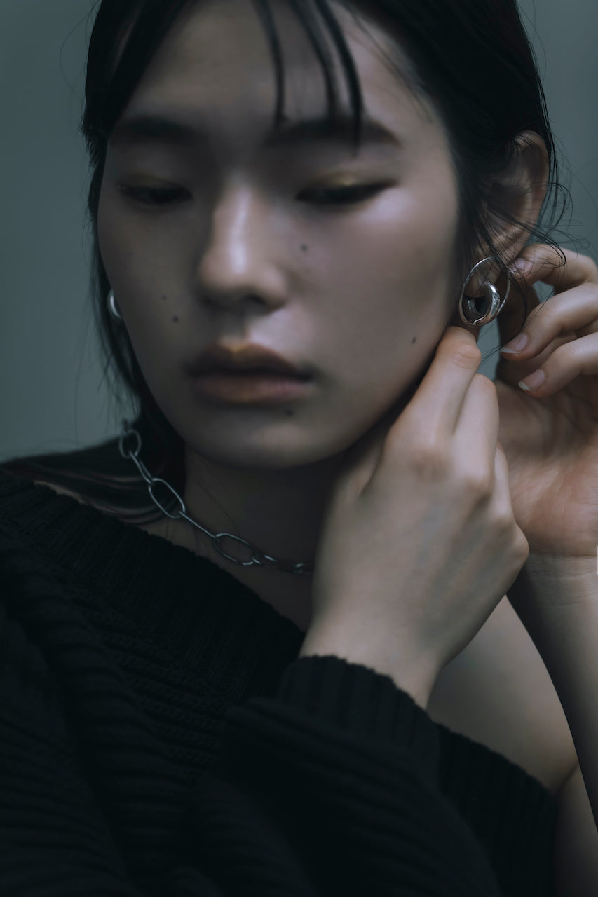 主張しすぎないミドルなサイズ感ながら、ひとつで耳元をスタイリッシュに彩ってくれます。耳元にぴったりとくっつくデザインはモードな雰囲気も演出。