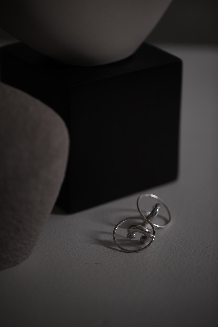 シンプルなフープピアスのまわりにサークルがドッキングしたデザインピアス。