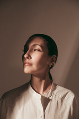 お手持ちのイヤーカフと重ねづけもさらにスタイリッシュな印象に。