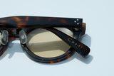 クラシカルとモダンが調和する、ニュアンス豊かなマルチカラーのフレームサングラス。