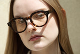 ほどよく角のある柔らかなシェイプが、印象を引き締めつつも優しさをキープ。高品質アセテート素材により、艶やかで奥行きのある仕上がりに。