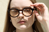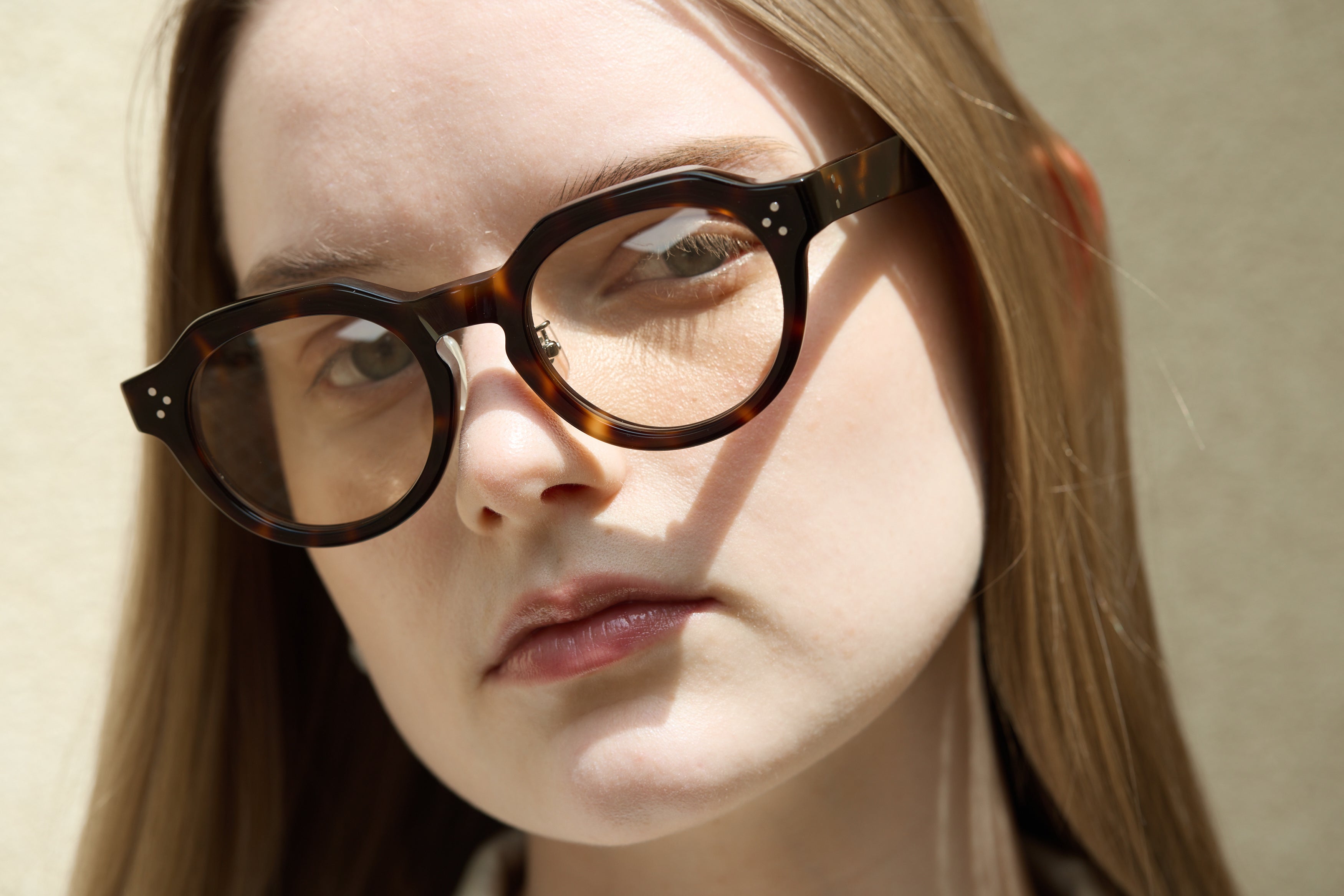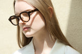 べっ甲調のブラウンベースに、絶妙な濃淡を織り交ぜたフレームが、顔まわりに立体感とこなれた雰囲気をもたらします。