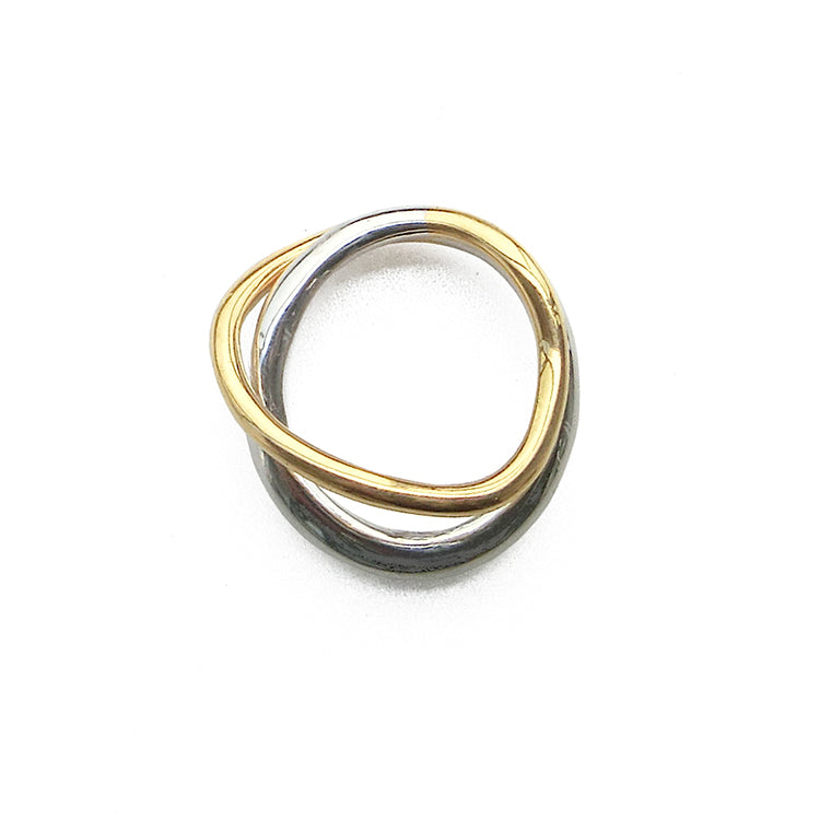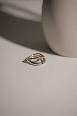 2本の曲線はそれぞれ太さもちがい、存在感のあるサイズ感ながらも、抜け感の漂います。Tripelよりシンプルなデザインなので、お手持ちのリングとのコーディネートにもオススメです。