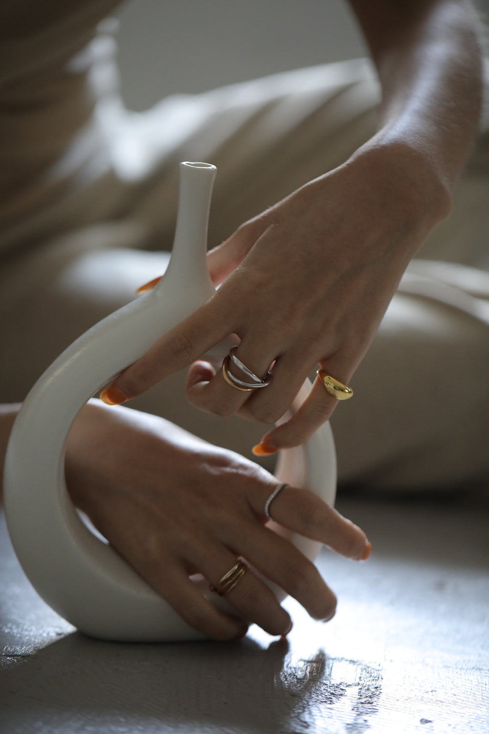 ワンストローク(一筆描き)でデザインされたしなやかかつ強弱のある曲線が指先をスタイリッシュながらも華奢に魅せてくれるリングです。