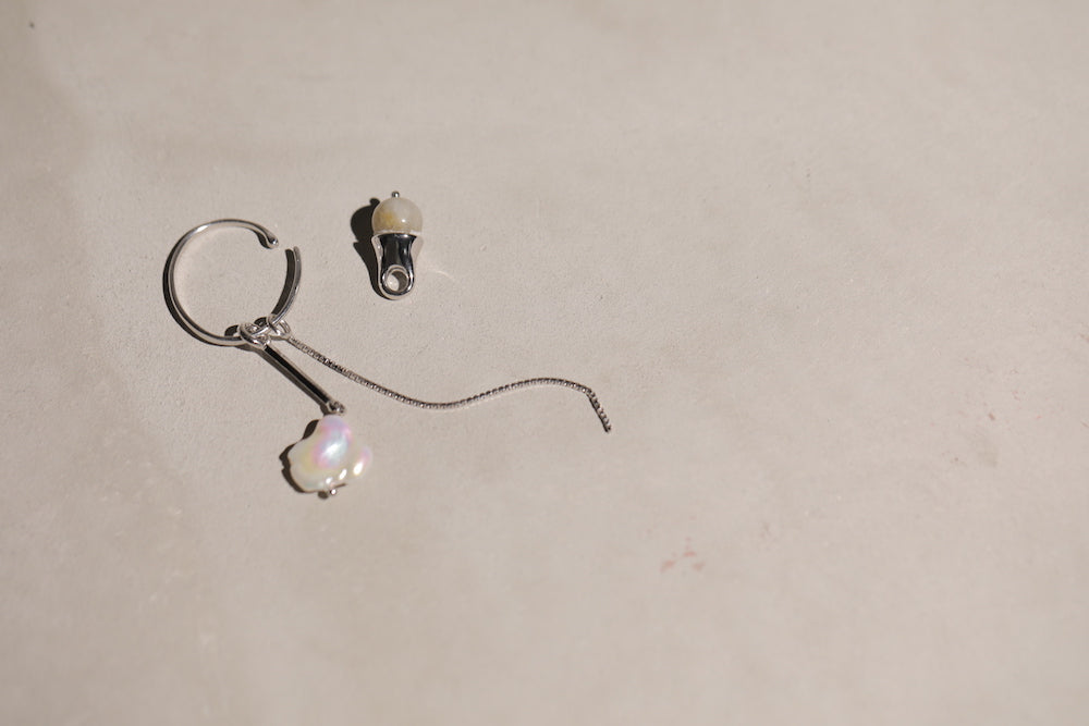 イヤーカフに通すバーが付いており、軽やかに揺れるパールはスタイリッシュな雰囲気で耳元にポイントを加えてくれます。