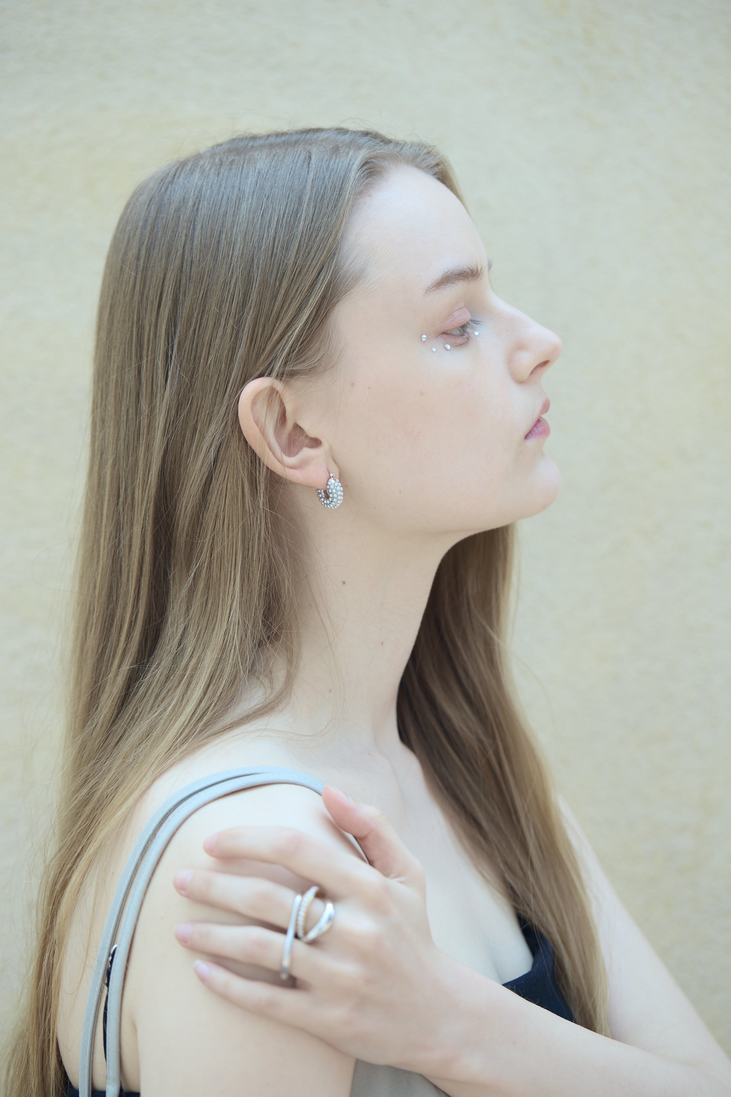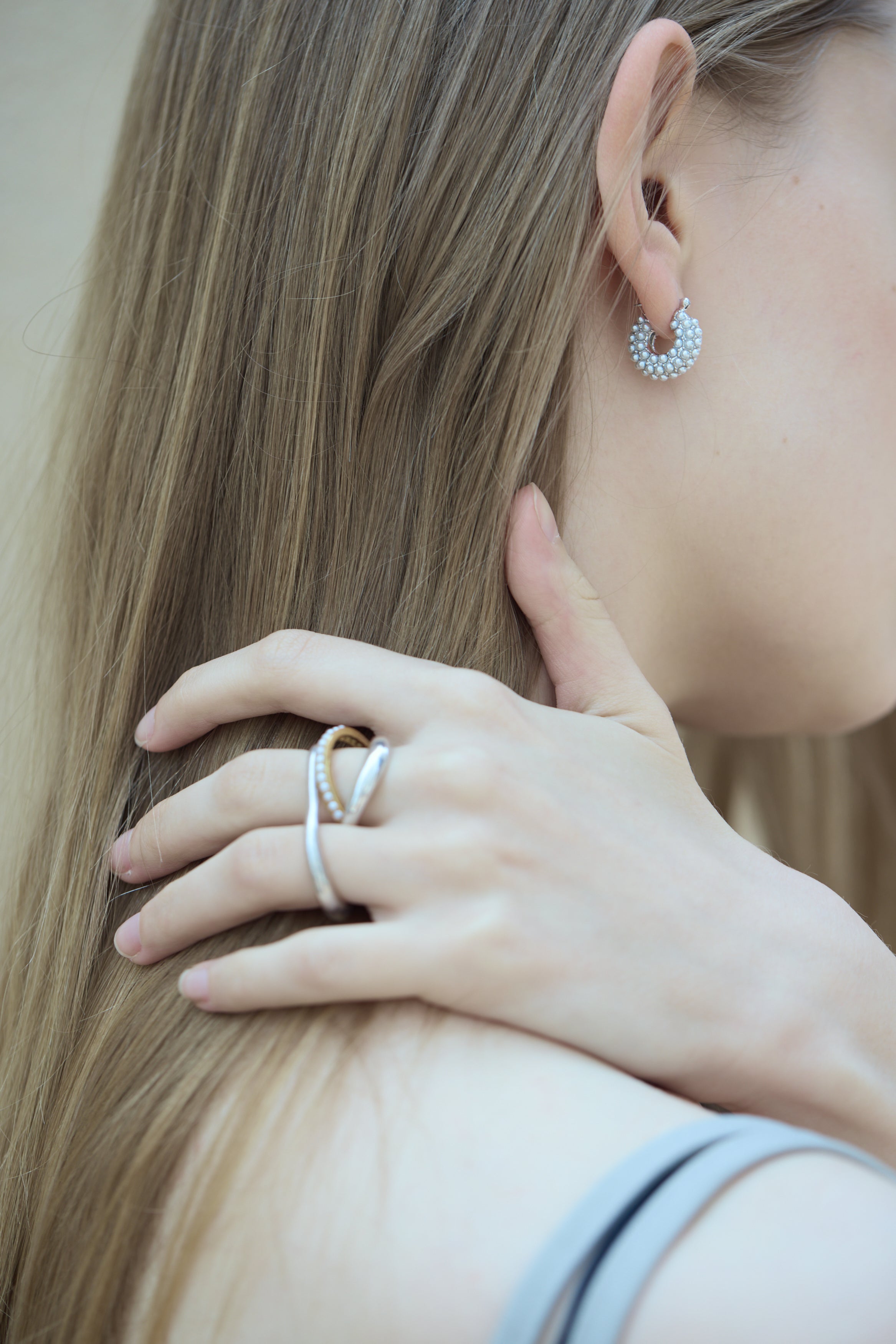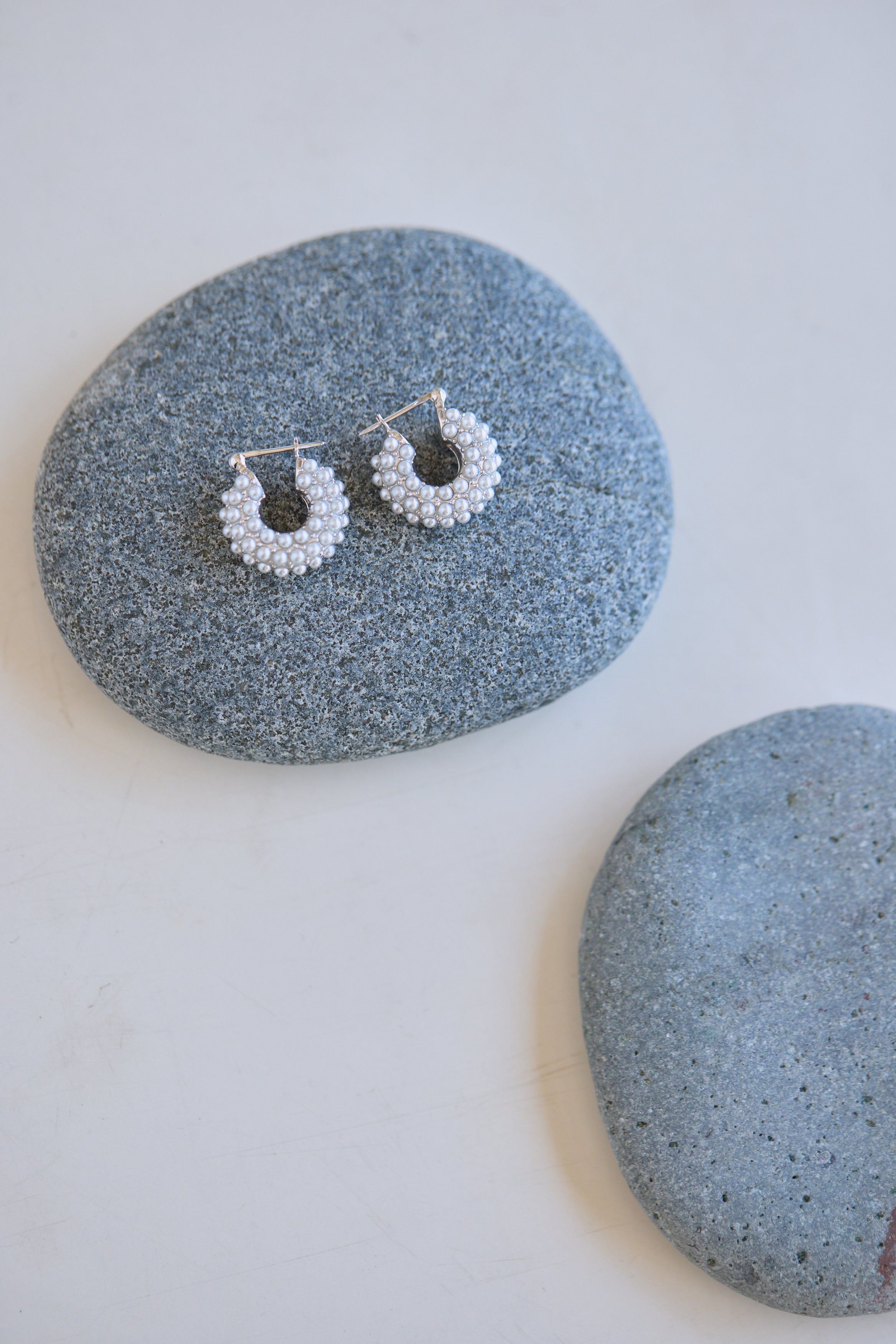 Cristal Pearl Hoop Pierceは、ひと粒ひと粒が織りなす優美なテクスチャーが魅力のミニマルサイズのフープピアス。程よくこぶりなシルエットながら、顔まわりに上品な輝きを添えてくれる一品です。