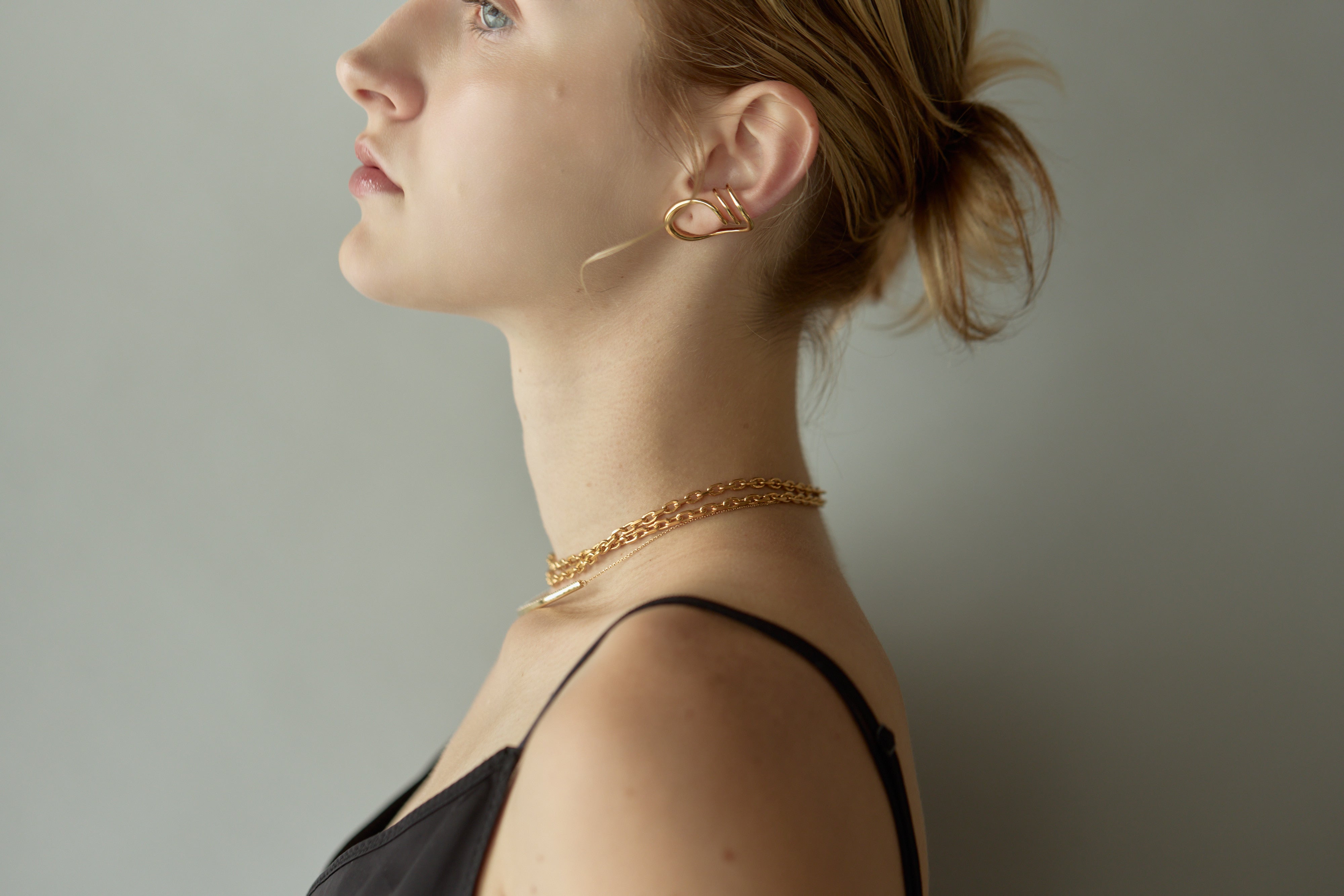 同じチェーンを用いたネックレス、ブレスレット、リングの3型チェーンシリーズのひとつ。