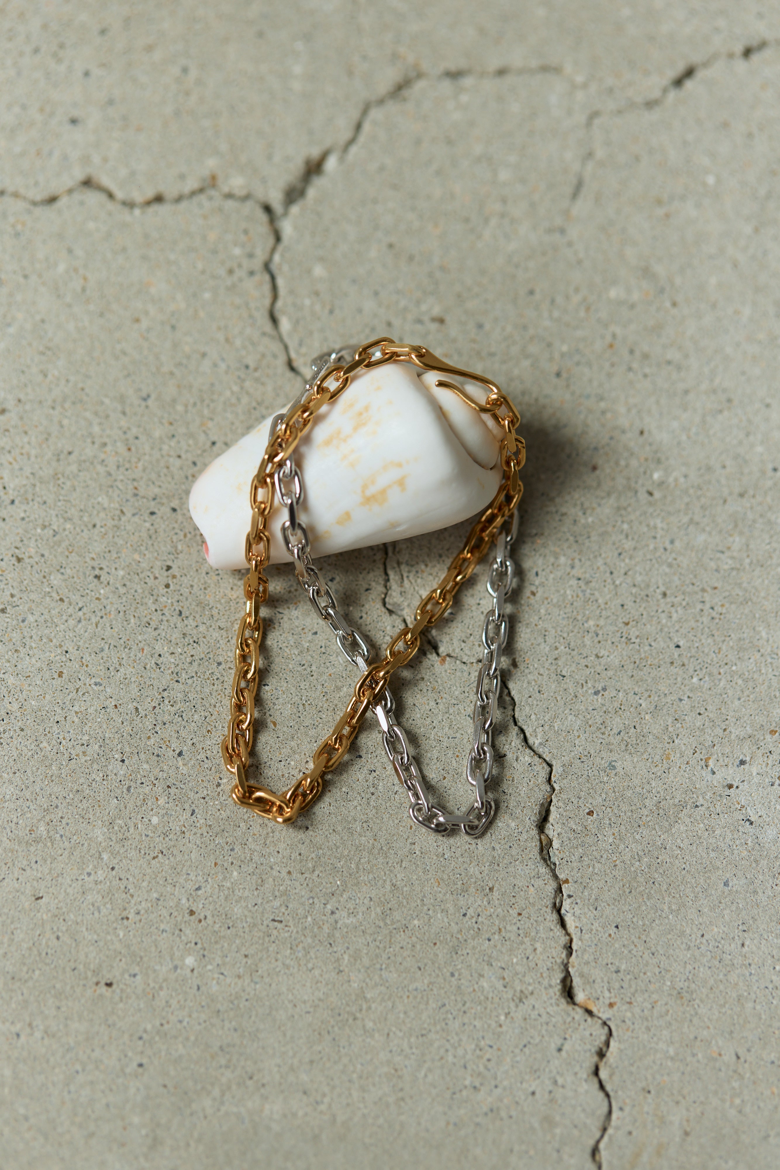 同じチェーンを用いたネックレス、ブレスレット、リングの3型