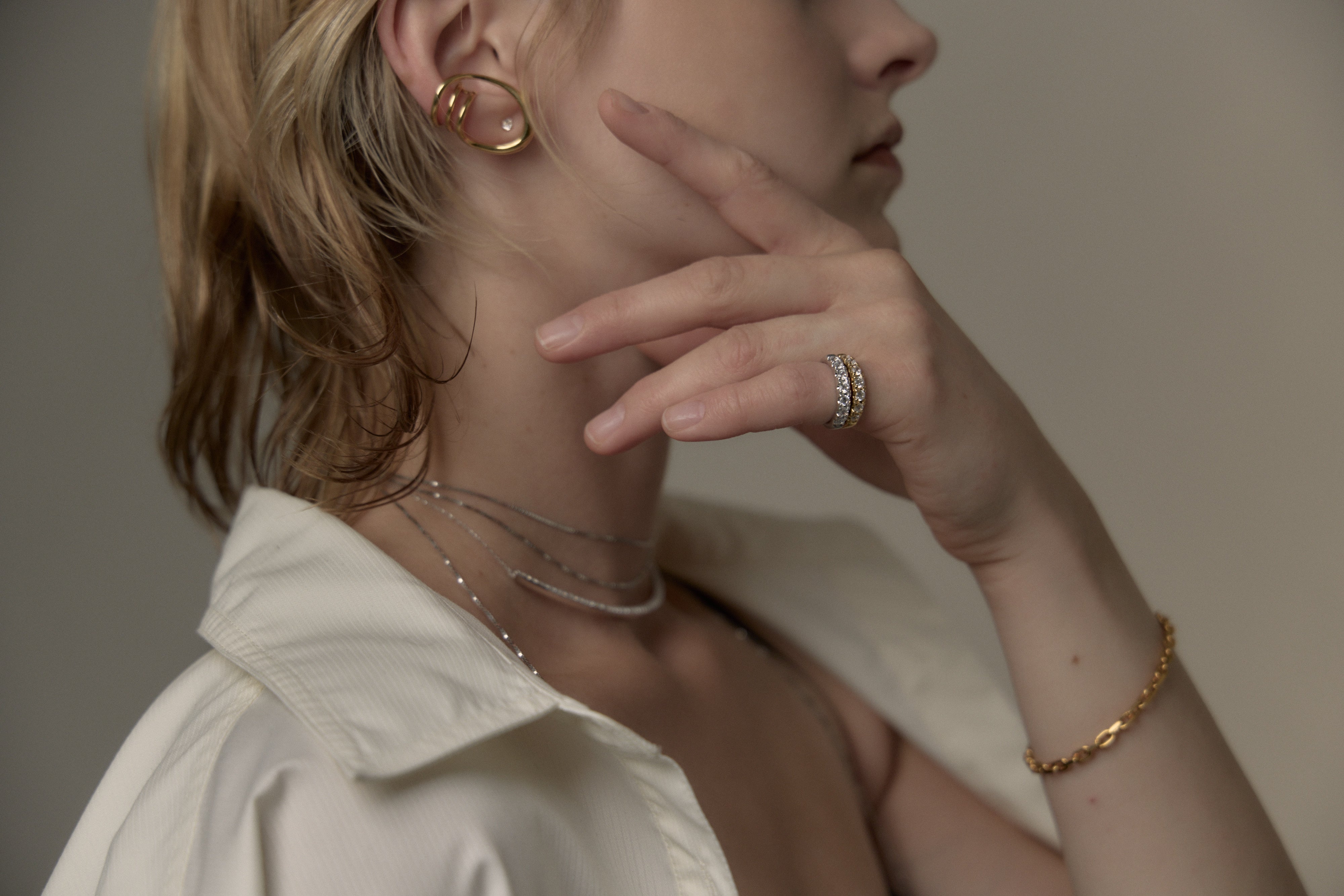 チェーンシリーズのひとつ。ほどよいボリューム感と繊細な輝きを併