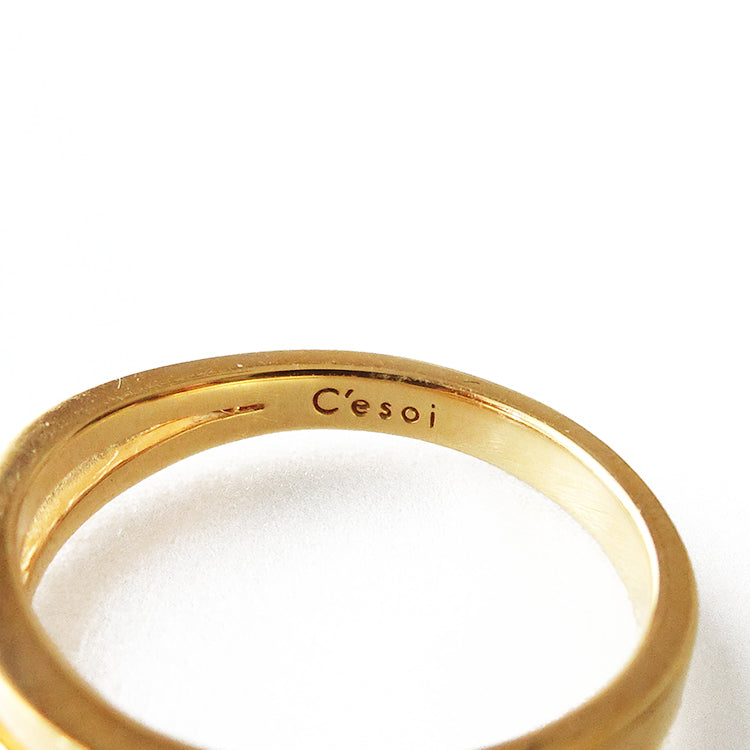 ラインの間のわずかな隙間がふとした抜け感をプラス。デイリーにもコーディネートにも、幅広いパターンでお使いいただけるゴールドリング。シンプルなリングがお好みの方、もちろんコーディネートがお好きな方でも人と少し差をつけることのできるリングです。